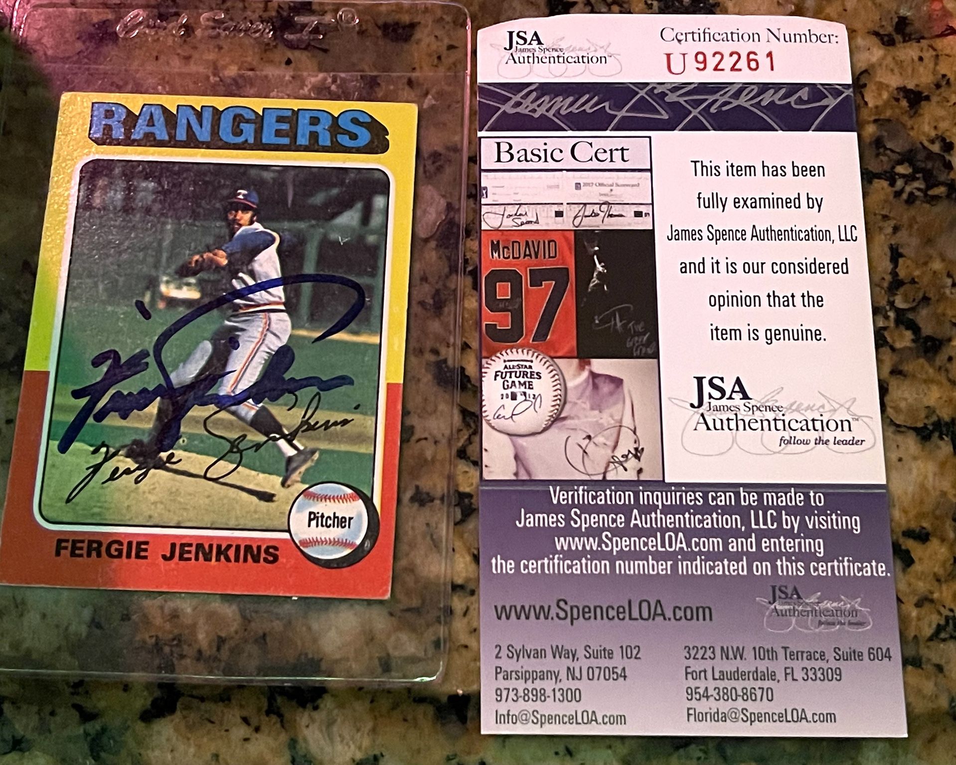 JSA COA FERGIE JENKINS SIGNED 1975 Topps Baseball Card