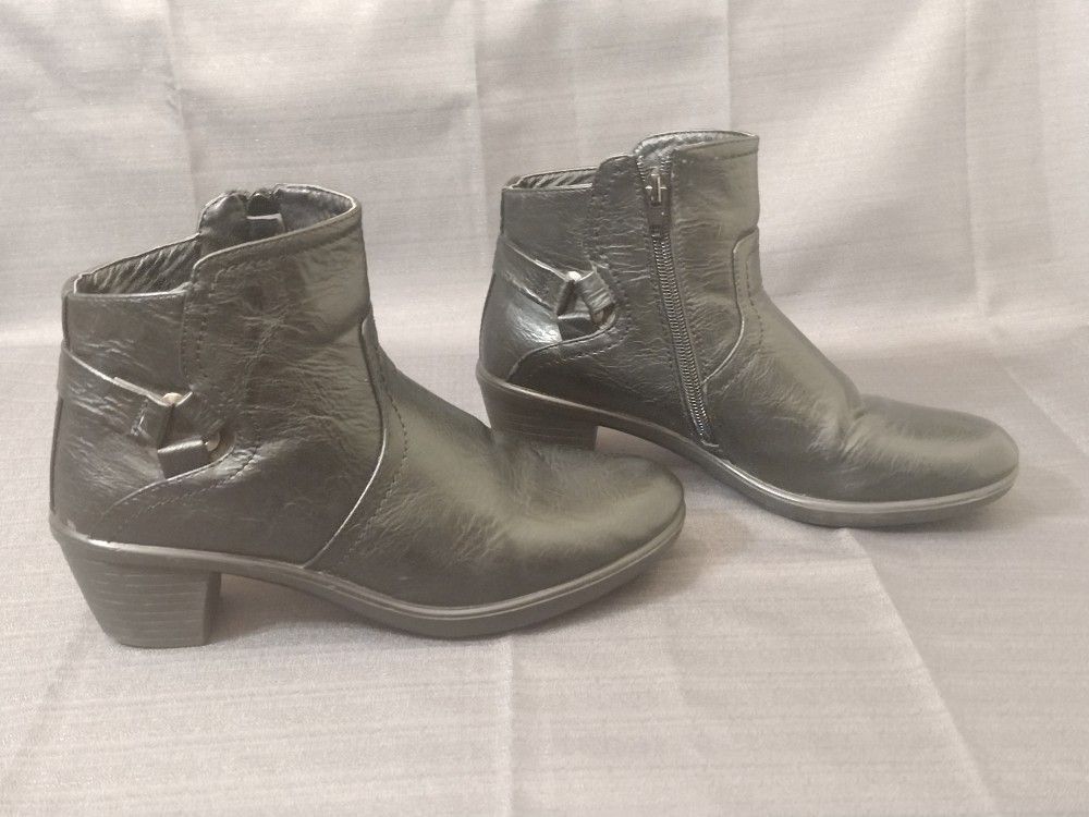 •Shipping Only. No Local Pick Up Due To Schedule, Ships From Oklahoma. Same state shipping sometimes arrives quicker. * Ship through app only• *To buy push the Buy Now button and you'll see view of total for shipping + purchase.* Size 7M Easy Street Dawnta booties with comfort insoles, no notable scuffs or scratches, quality man made outer material, slight wear-down on the corners of the heels but not by much as seen in pics. Complements jeans, pants, skirts! This footwear is pre-owned, they've been inspected multiple times for notable flaws, and any spotted flaws are noted in the description and/or closed-up in image(s), but on rare occasion oversight of a flawed area can still occur. Color(s) named of this footwear is to the best of my visual perception and may appear a different color in your perception or on your screen. by purchasing you agree sale is as is. *Typically ships out in 5 business days, sometimes shorter. Arrives within 3-5 Days Once Shipped.* Thank you so for considering my item! Save fuel and time buying shipped! Thank you for looking!