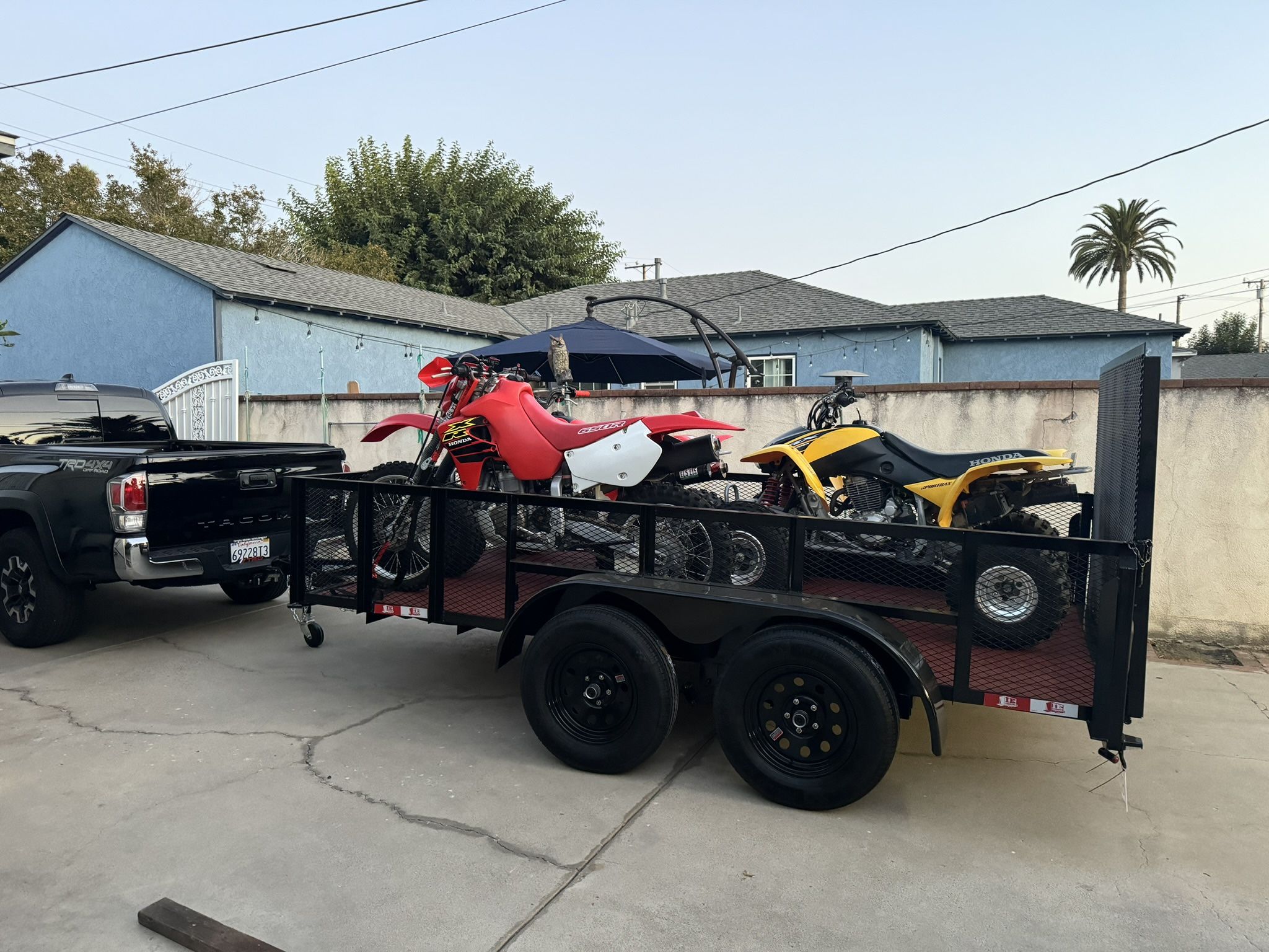 Like new 2025 utility trailer 6.5x12 box, tandem axle, 2ft tall metal screen rail walls, 4ft ramp, spare tire, retractable jack stand with wheel, 4 pin wire harness connector and 2 5/16 ball. I’ve only used it 3 times and it’s always been garaged. Pink in hand. $3500 OBO