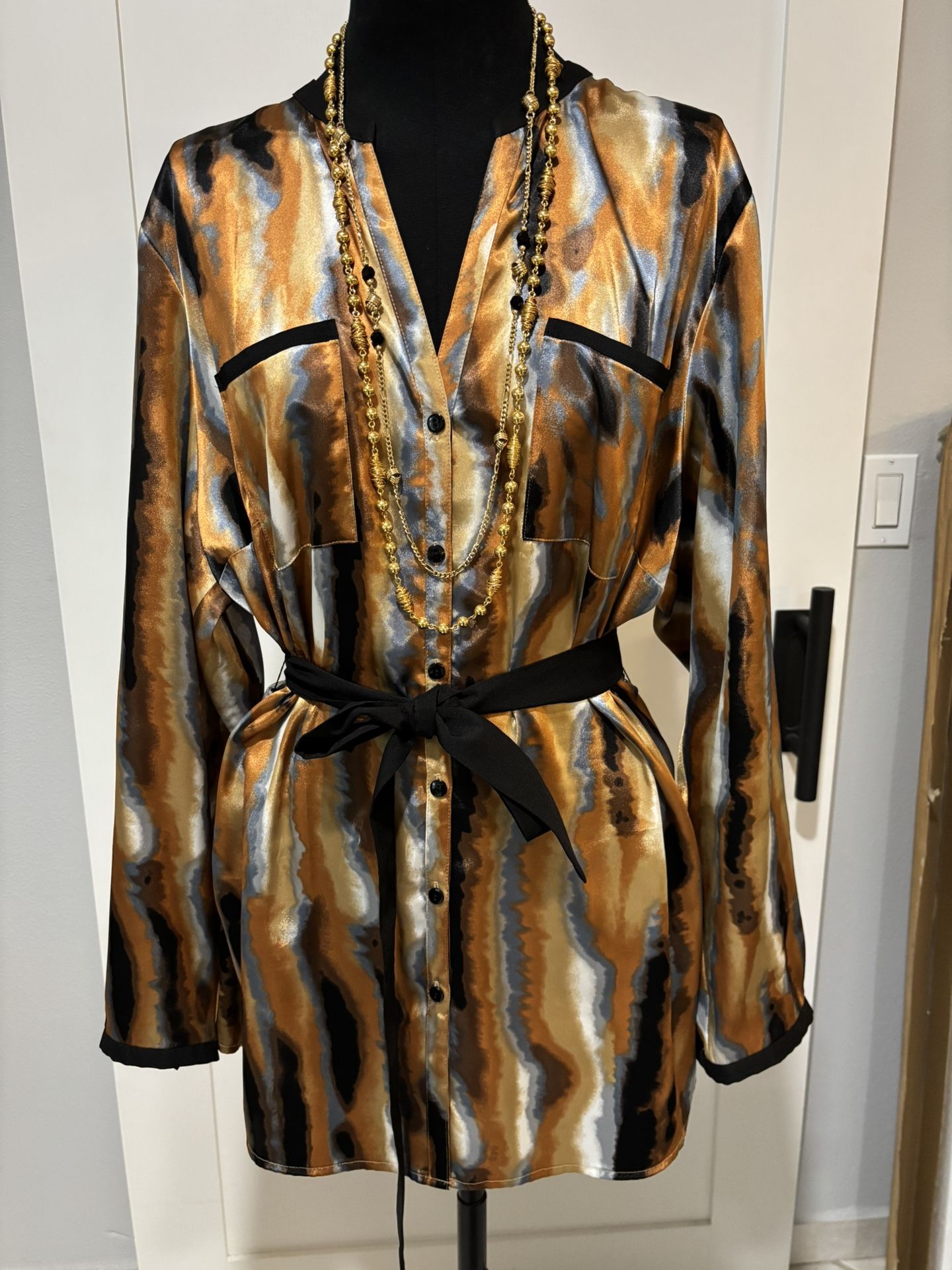 Gorgeous Kasper Size XL Brown /Gray /Tan Black Women Top Blouse, Stylish Modern, in excellent condition, size 2X. Pick up by Seaworld.