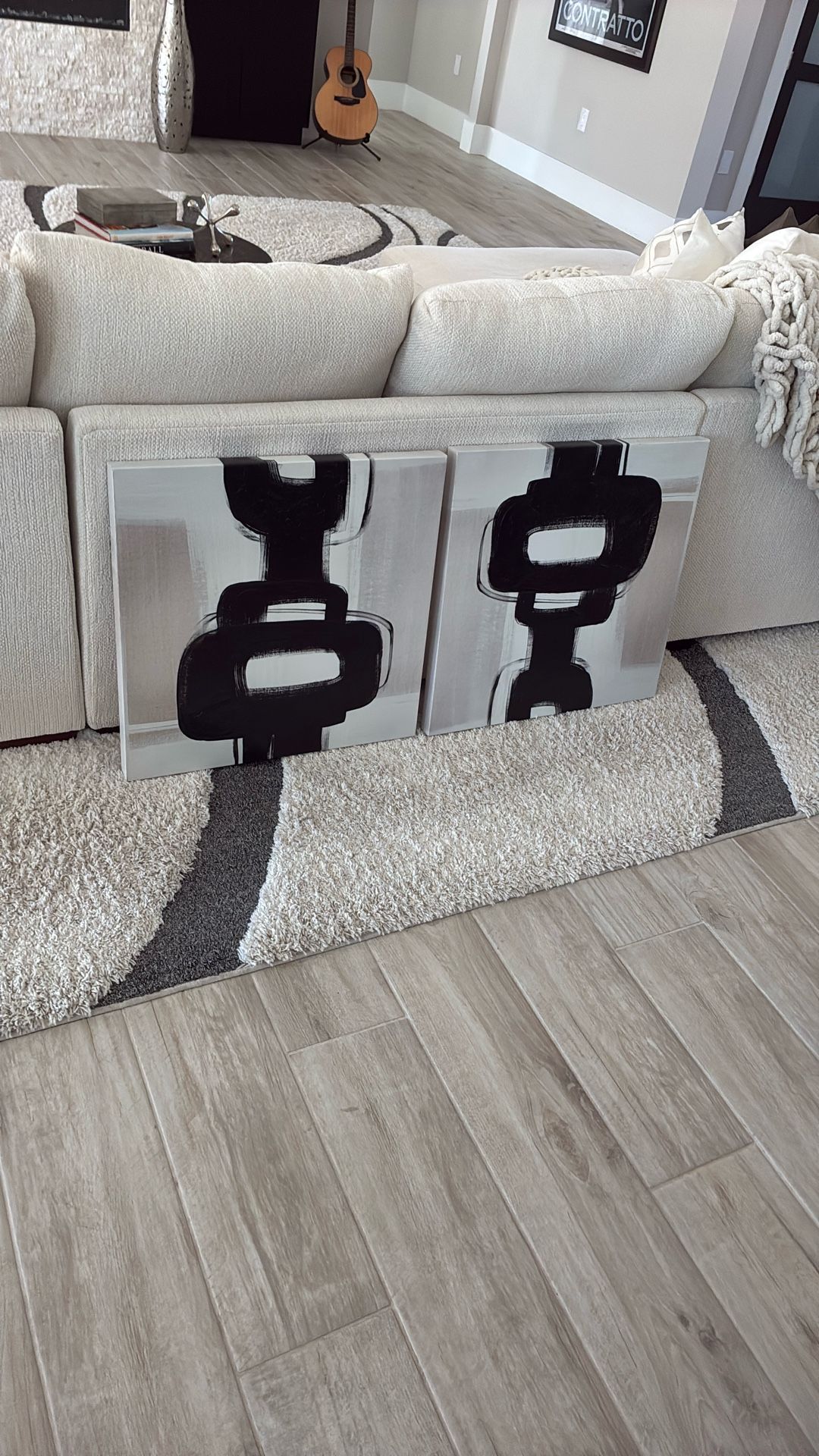 Pair of 2 canvas pictures. 24” x 24” each. Black, white and cream. Paid $100 . Asking $35 for both. EXCELLENT CONDITION