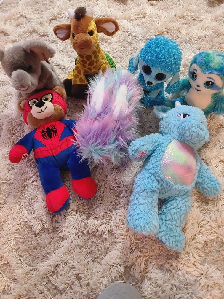 Spiderman, dragon, bunny, elephant, giraffe, dog and sloth