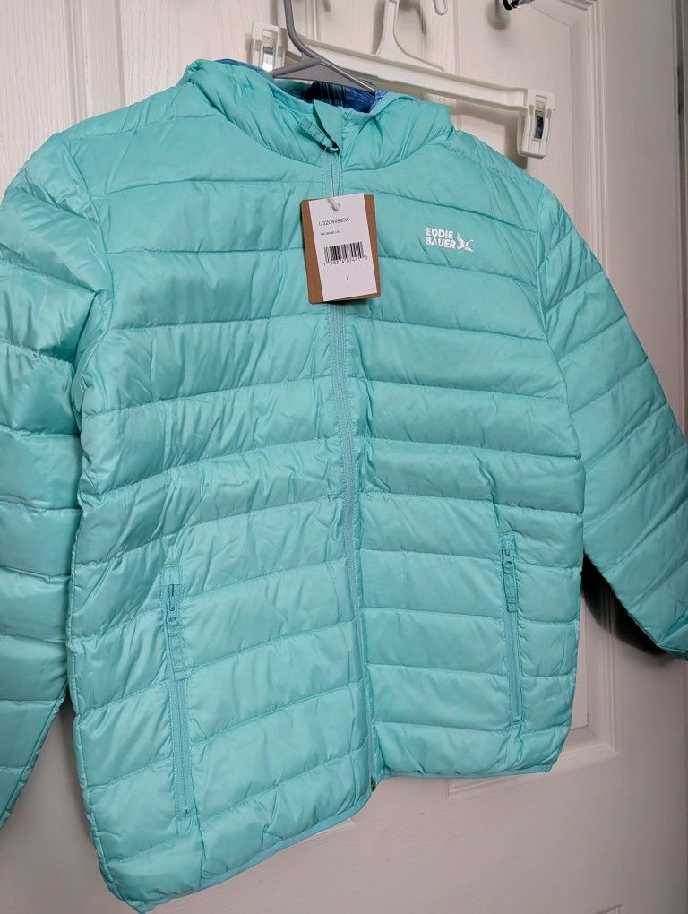 Eddie Bauer Girls Reversible Hooded Down Jacket