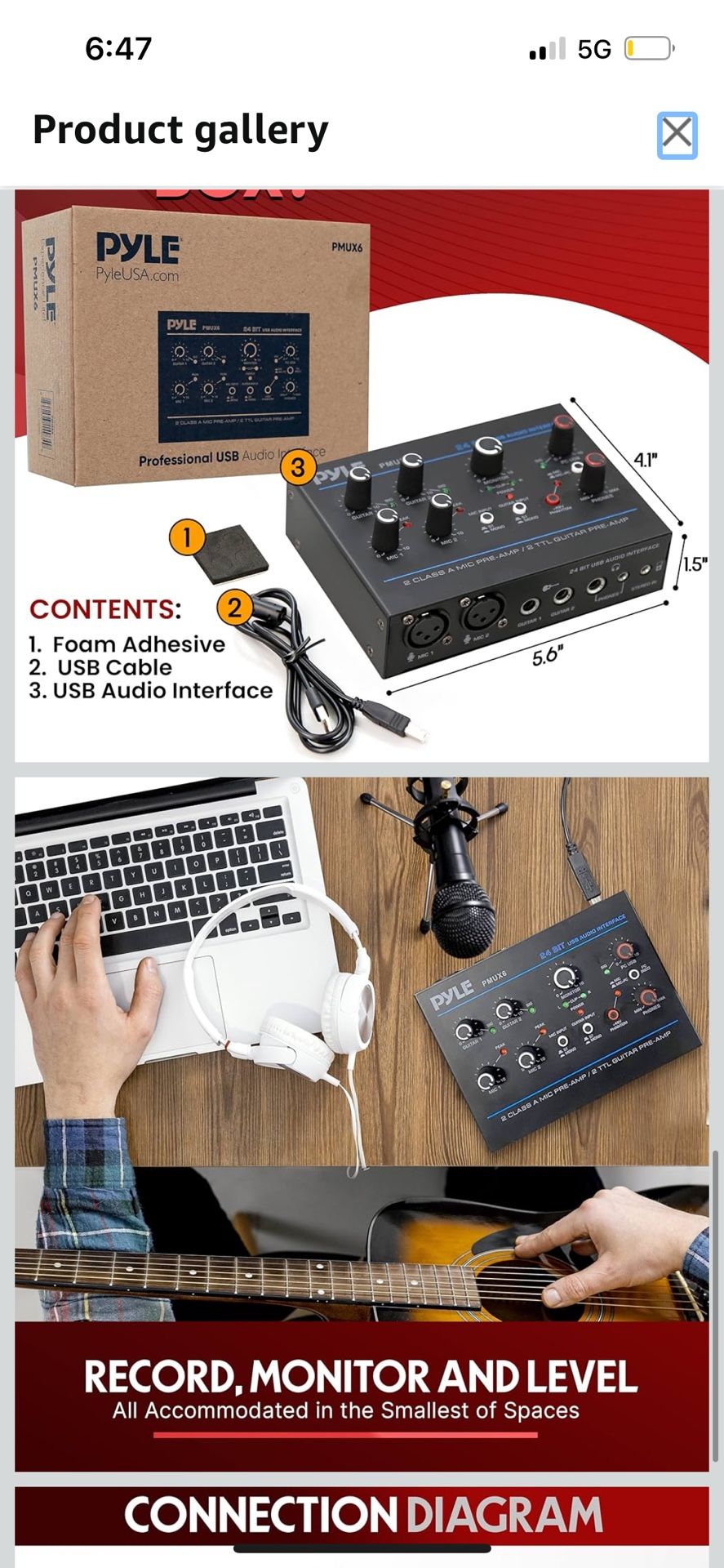 Pyle Professional USB Audio Interface with MIC, Guitar, AUX Stereo Inputs, Phone/Monitor Outputs, Ideal for Computer Playing & Recording, Compact Rugg