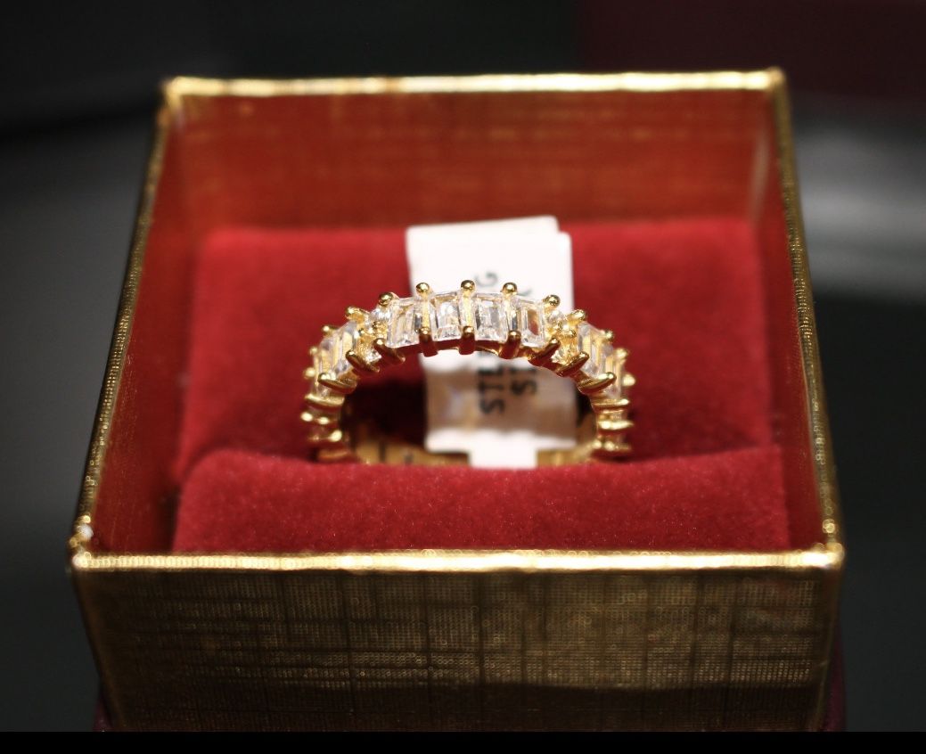 Yellow Gold Plated Round Solitaire band Cz .925 Sterling Silver size 8