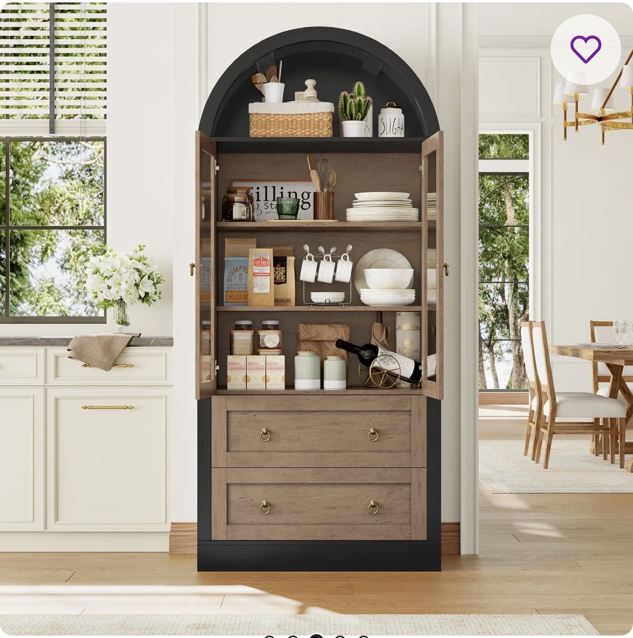 Arched 2 - Door Accent Cabinet With 2 Drawers,walnut and black