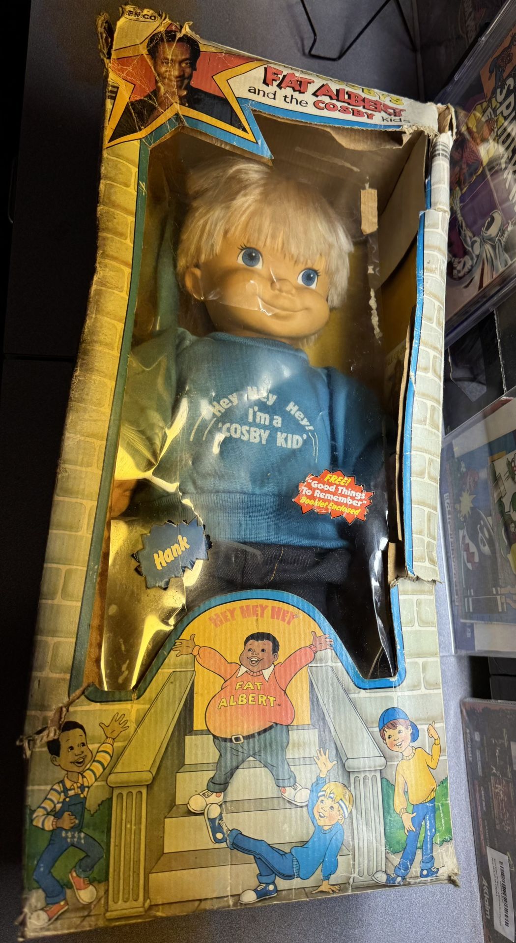 1985 Bill Cosby’s Fat Albert and the Cosby kids toy. Box a bit damaged but figure still intact Pick up in Vancouver