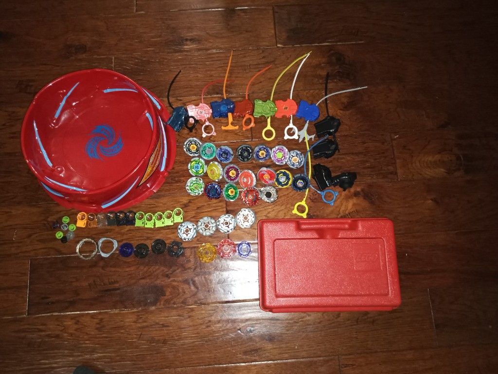 Metal fusion beyblades pack includes: 1x beyblade box, 19x original real metal beyblades, 1x bey stadium, 11x launchers, 10x ripcords, 11x tools, 20x random pieces for beyblades.l