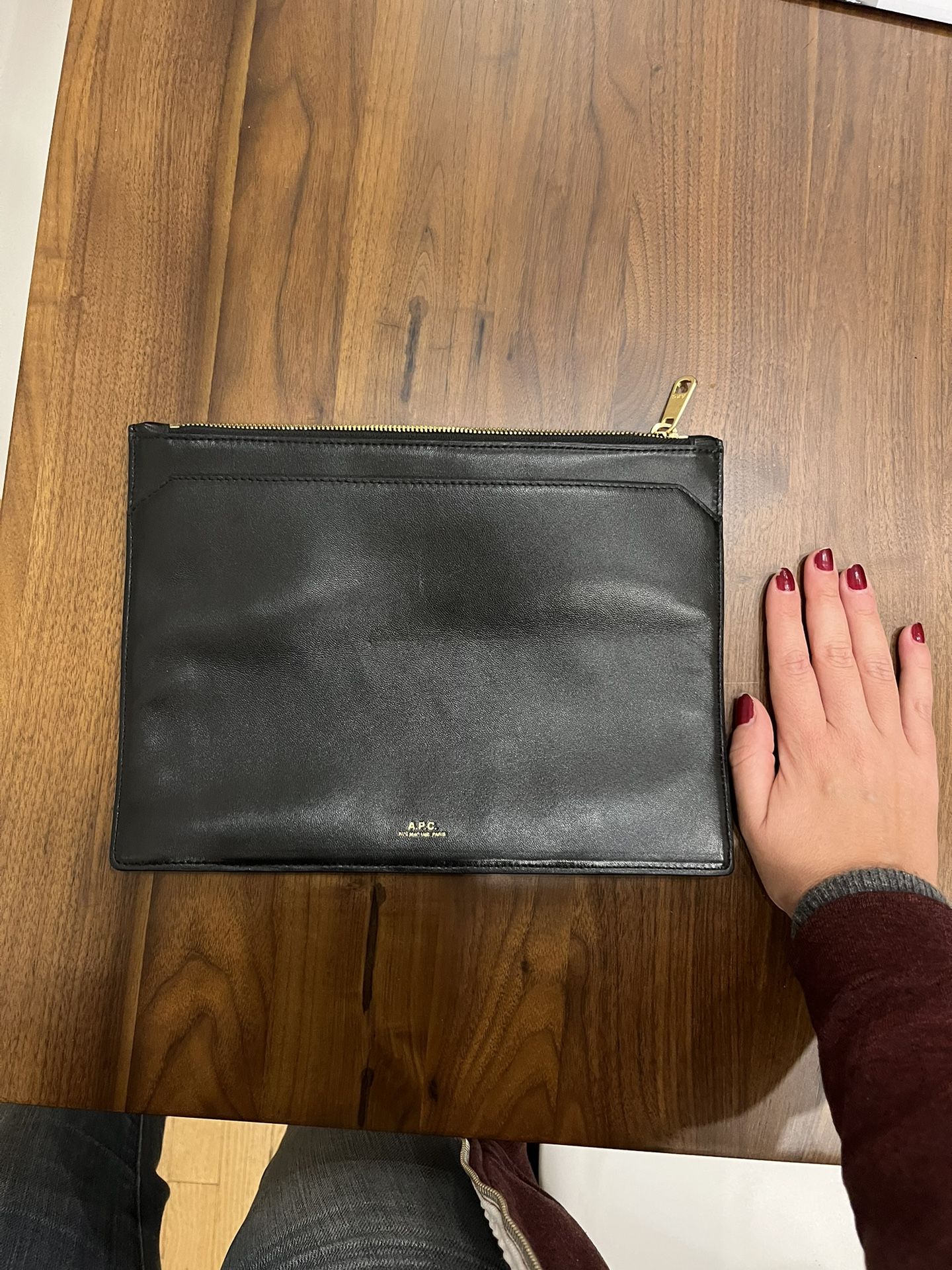 Black leather Was never worn, in a pristine condition Hand for scale, it is pretty big Available for pickup in Manhattan