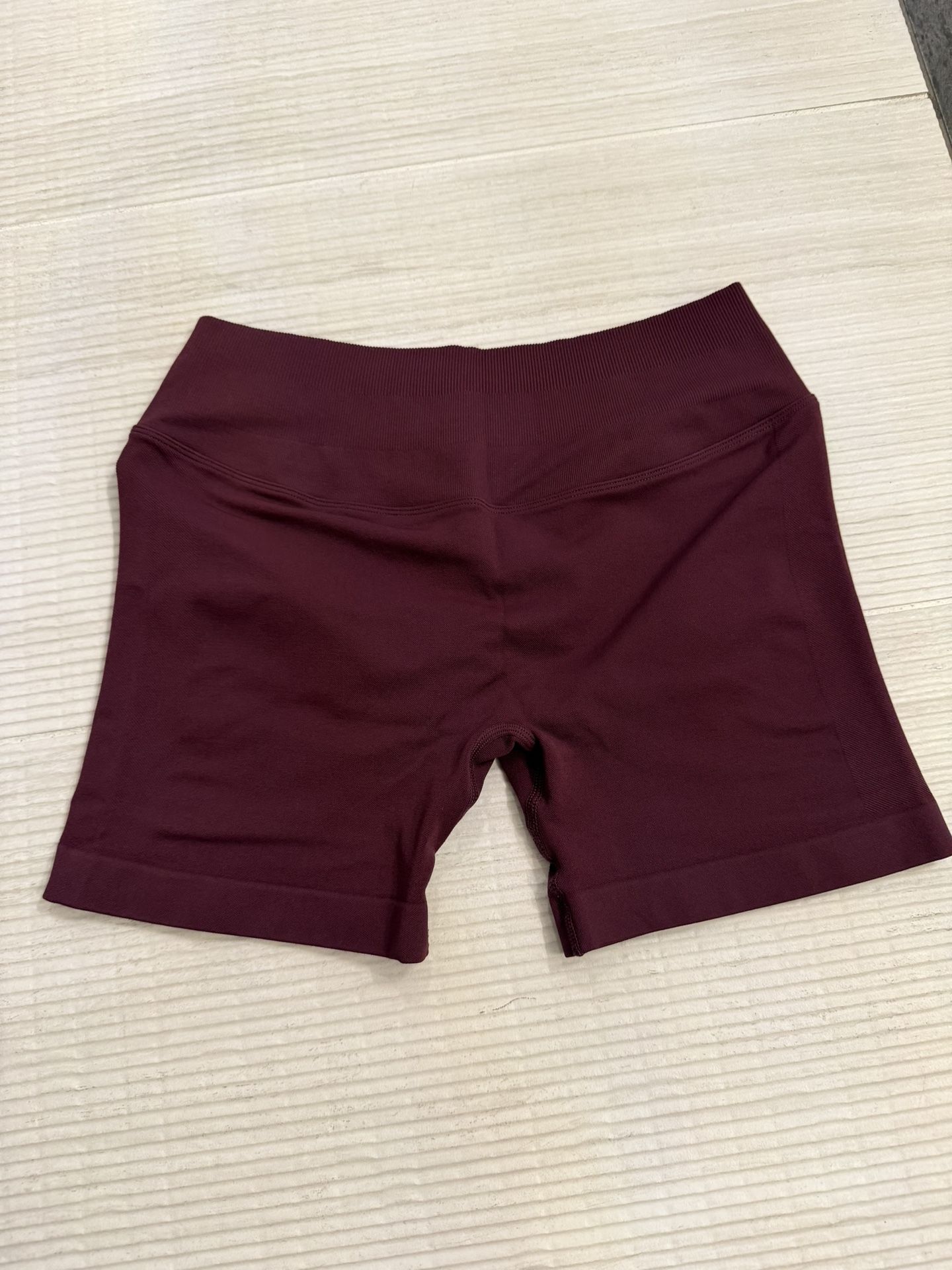 AUROLA Influence Workout Shorts for Women 3.5 No Roll Up Squat Proof Scrunch Seamless Compression Gym Short Size M New Color: Black Cherry