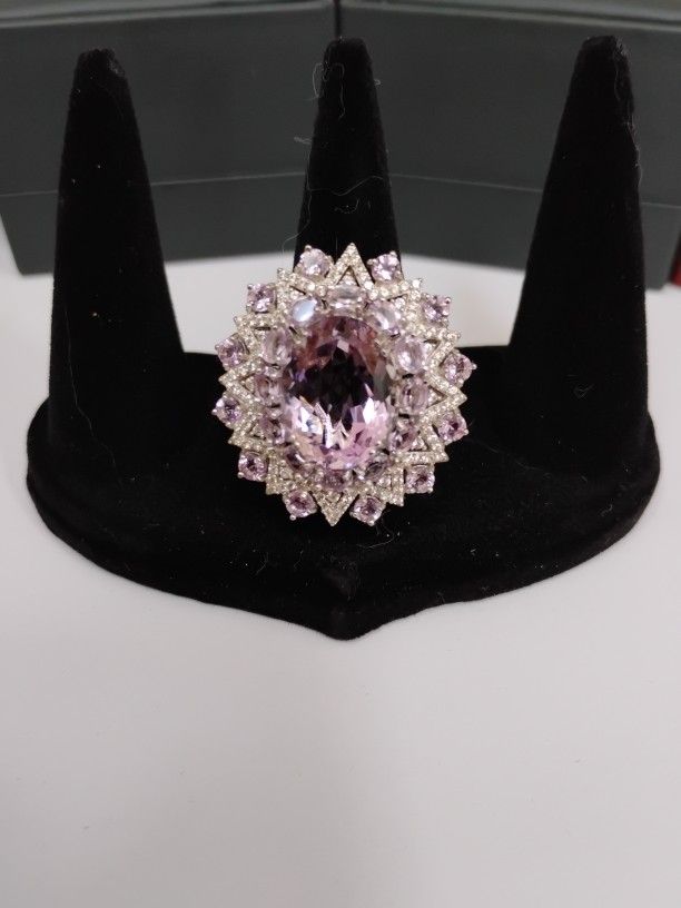 This ring is a real showstopper it's Rose to France amethyst white zircon eclipse Royal ring in rhodium over sterling silver size 7. 13 carat total weight. This ring is gorgeous. If you are looking for a statement piece this is it. Great Valentine's day gift. Today's price $75.00