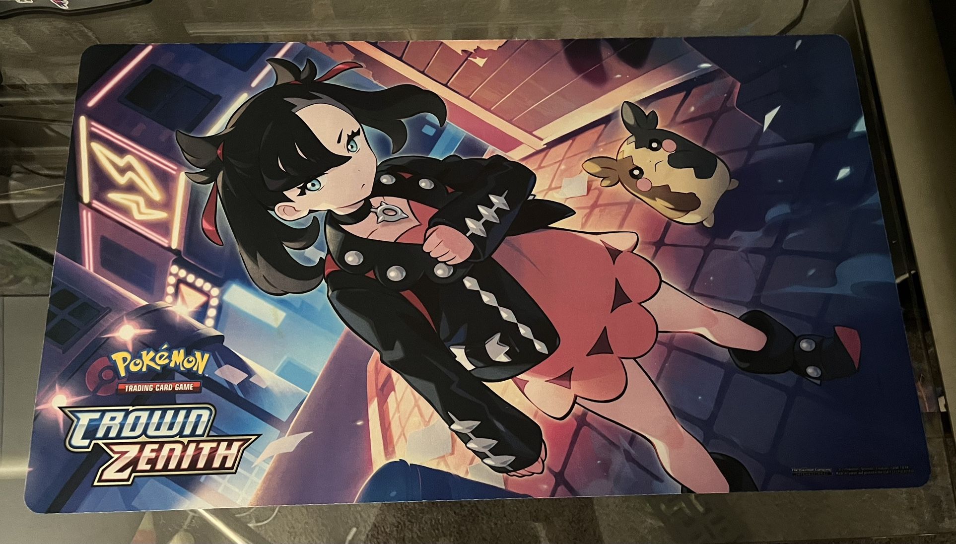 Pokemon tcg Crown zenith Marnie and Morpeko playmat. It’s in pretty good condition I haven’t really used it. It could also be used as a mouse pad