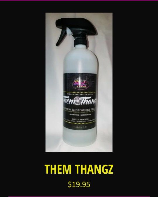 Them Thangz is the perfect one-step wheel cleaner that works quickly and easily on all chrome and gold wheels. This exclusive formula will safely remove water spots, dirt, rust, break dust, and stubborn road grime, while leaving a "New Look" shine without damaging the rim's finish. Not for use on aluminum, magnesium, plastic, or painted surfaces.