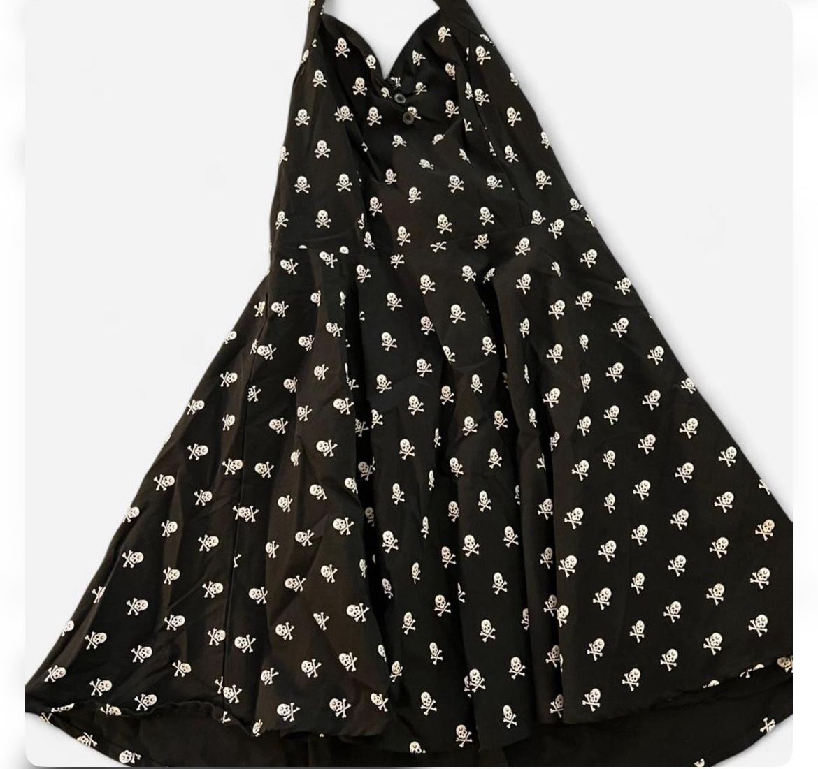 Black & white skull print halter neck pin up dress, cute flared base Never worn Size medium/large #goth #skulldress #pinup #gothpinup #killstar