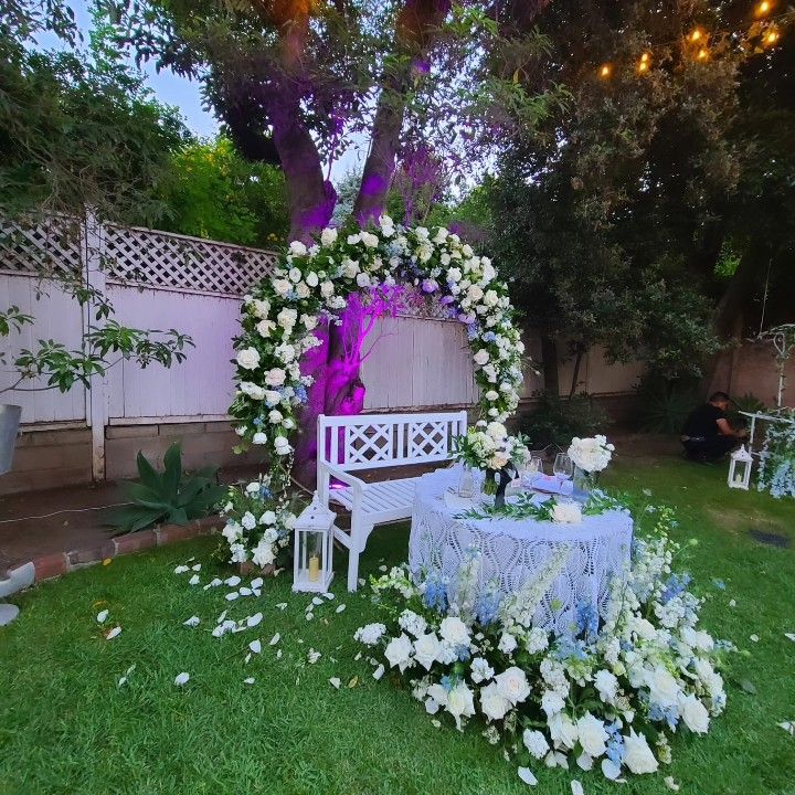Flores mesas sillas comida centros de mesa y mucho mas