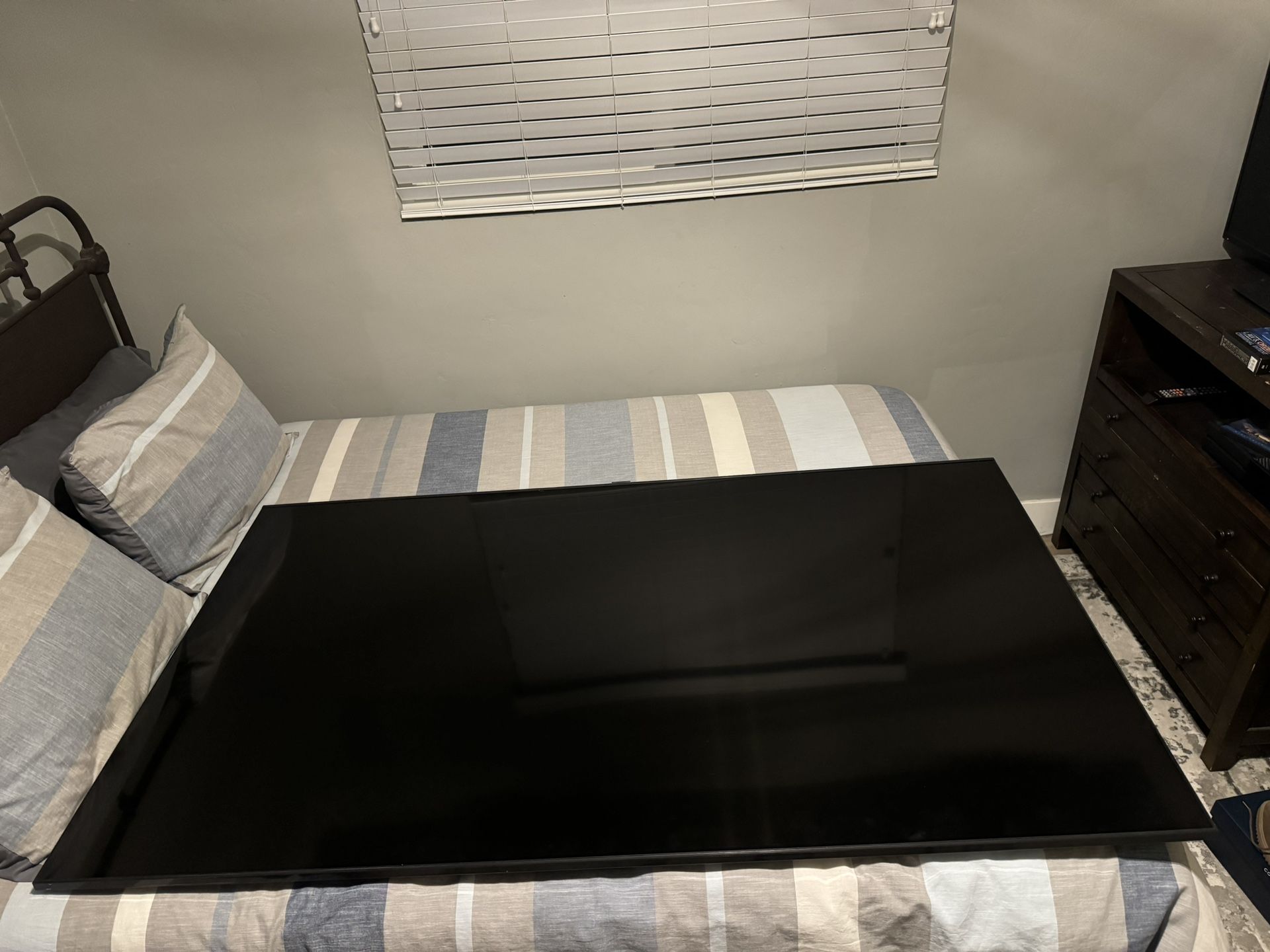 Quality is perfect. No cords though. Tv was around 1k, asking 500 for it. Flexible on price. Great for football season!
