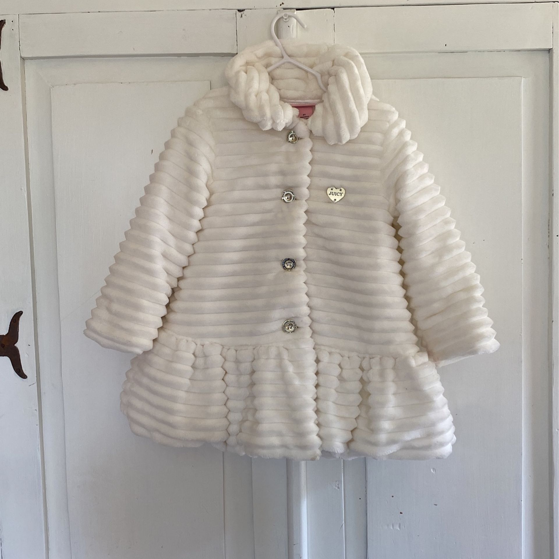 Toddler girls 4T Cream, Juicy Couture coat. It’s in really good condition. No holes, rips or stains. Worn a couple times.