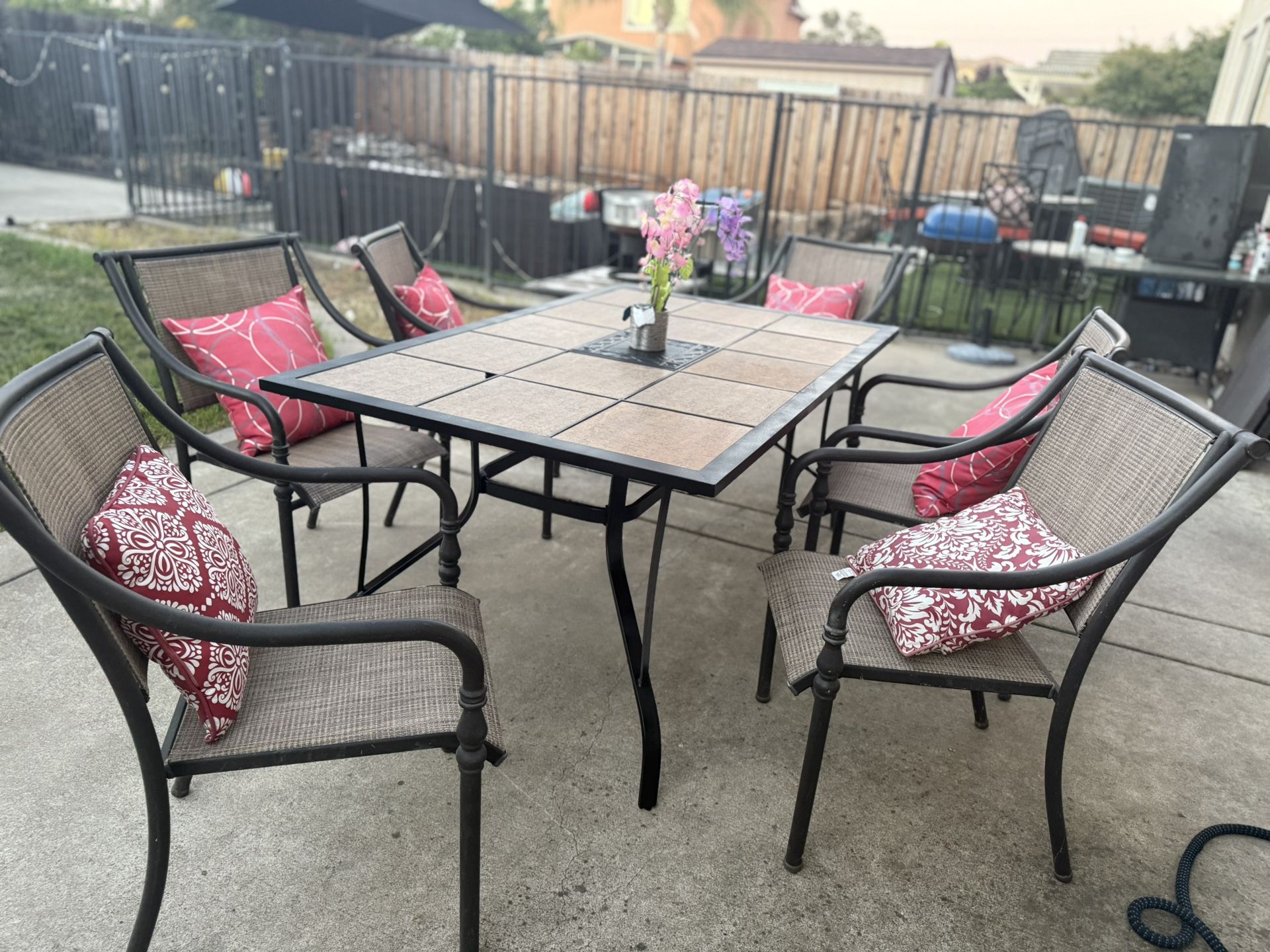 Beautiful 7 pc patio set Very good quality Decor not included