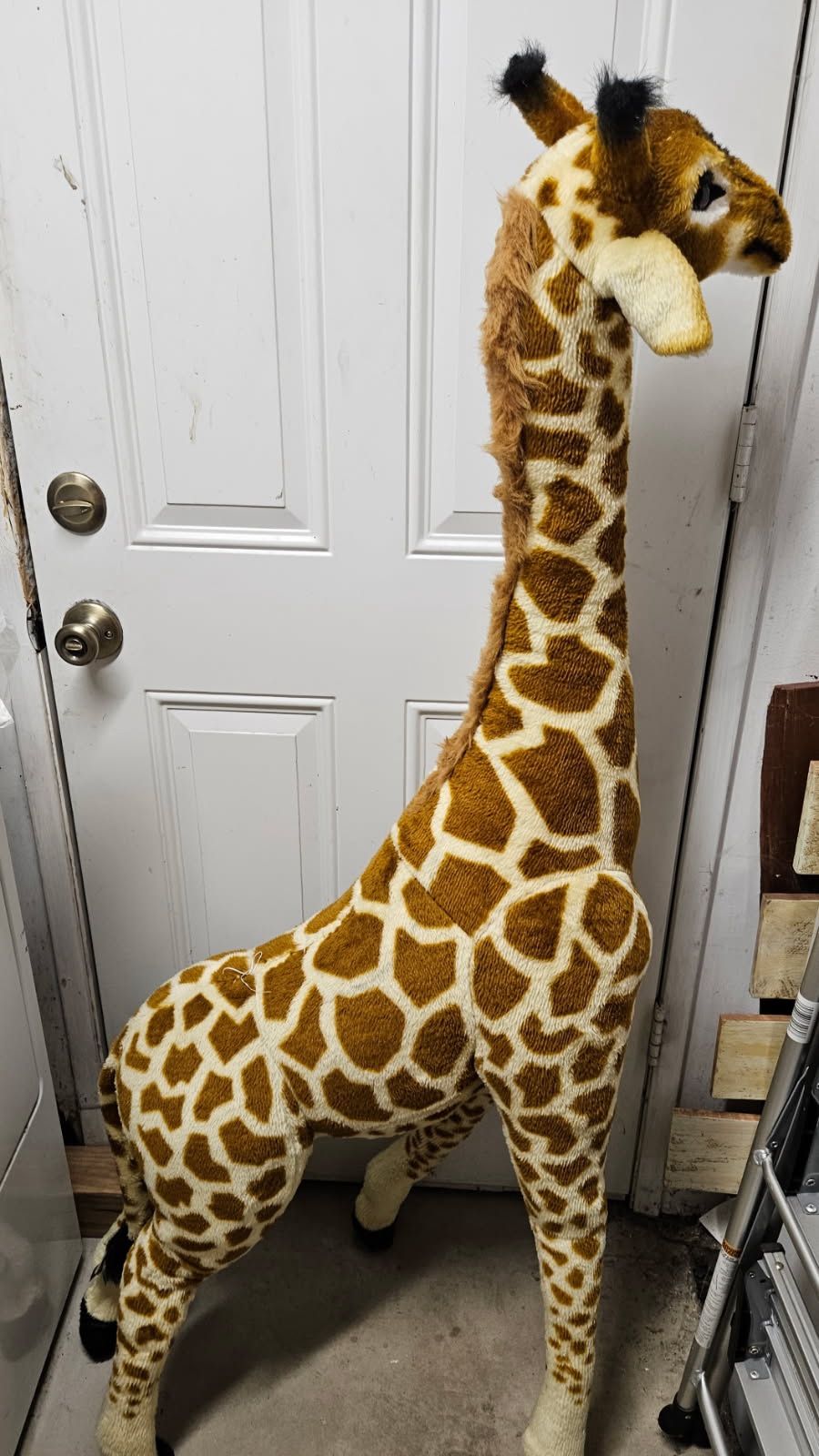 Melissa & Doug...back has been restitched.stands on its own but legs are a bit crooked.