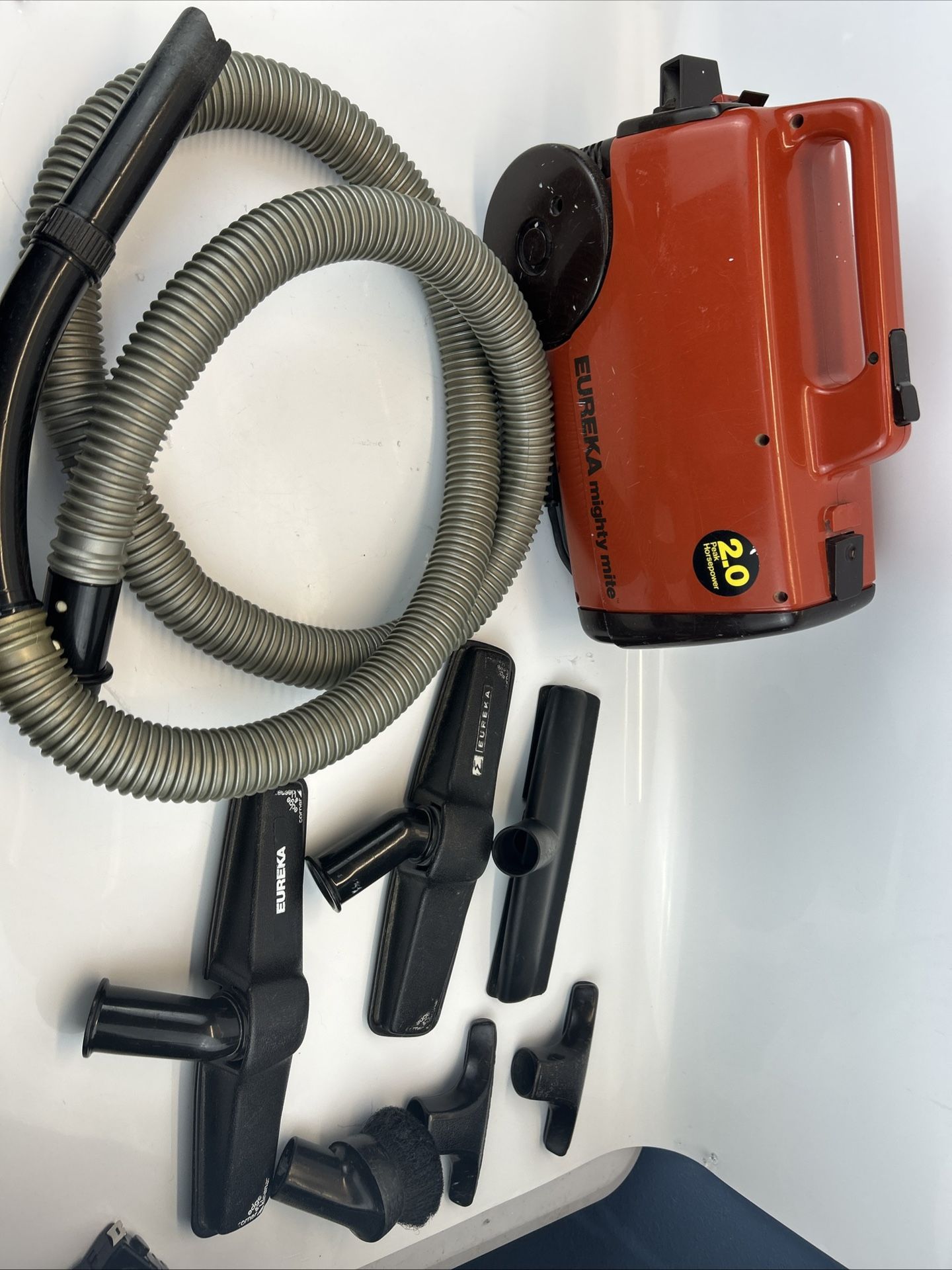 Eureka Mighty Mite 2.0 HP Orange Canister Vacuum w/ Hose & Accessories – Good