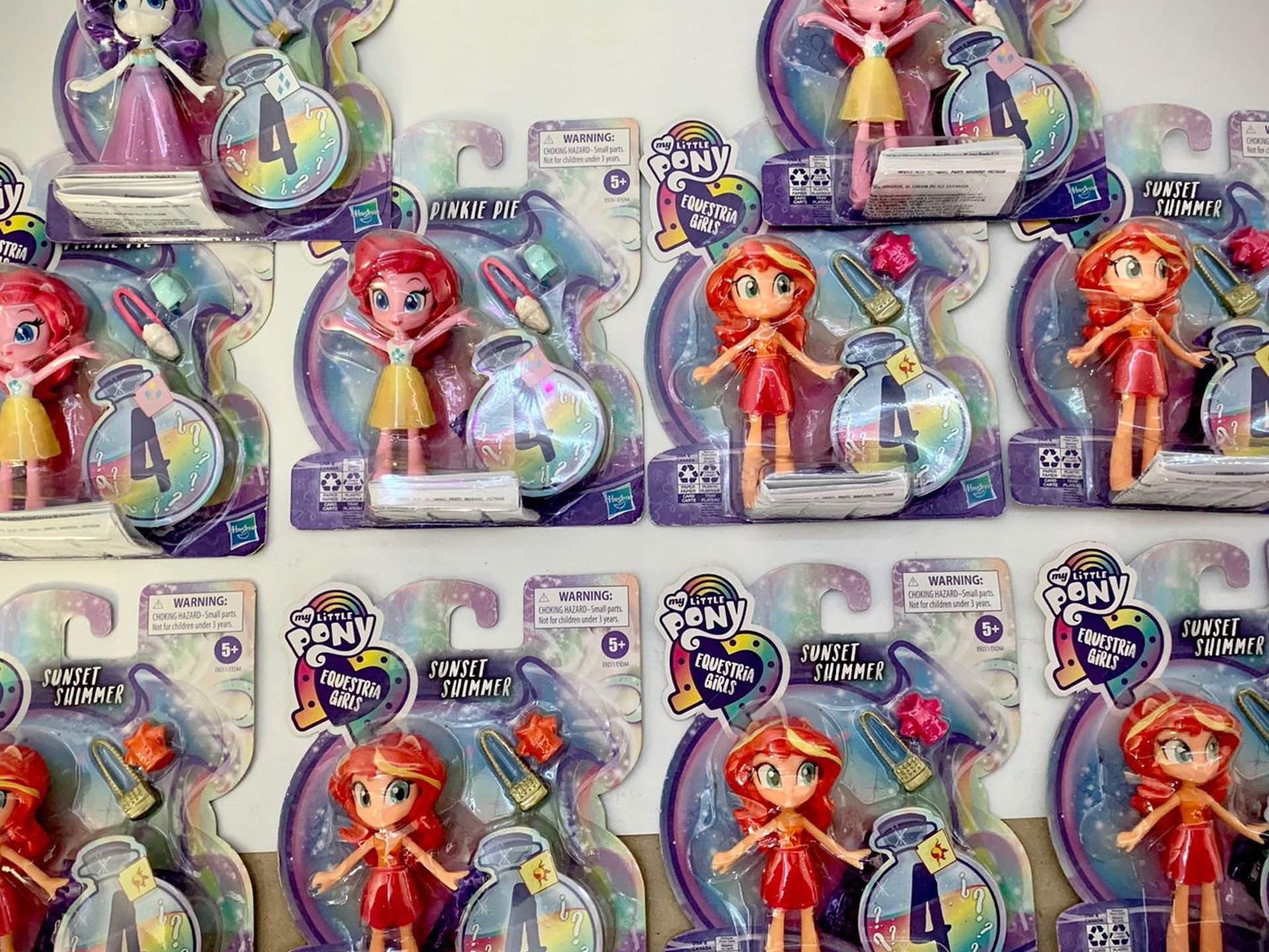 10 for $40!! Brand new! Reveal the magic of dressing up Rarity in fashions that she loves! This Rarity mini doll comes with 7 character-inspired outfit pieces and accessories, 4 of which are hidden for a fashion surprise! Tear open the potion bottle-themed pack and pour out the accessories inside to reveal surprise fashions and dress Rarity up in her signature style. Removable outfit pieces are recognizable to her character and include a top, skirt, and purse. In an adorable and collectable 3-inch size, this poseable doll has 5 points of articulation to imagine stories inspired by the My Little Pony Equestria Girls movies and animated shorts. Rarity doll has molded, squishy purple hair in a character-inspired style. Look for other Equestria Girls toys, including Applejack, Pinkie Pie, and Sunset Shimmer Fashion Squad dolls to mix and match styles (Each sold separately. Subject to availability. My Little Pony Equestria Girls and all related characters are trademarks of Hasbro.Includes Rarity doll, top, skirt, purse, and 4 fashion accessories. Figure scale: 3 inches.
