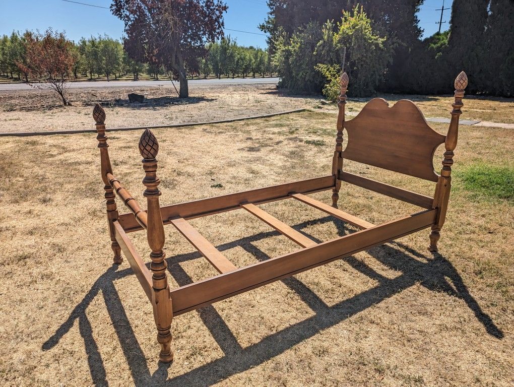 Elegant Wooden Single Four-Poster Bed Frame – Carved Finials