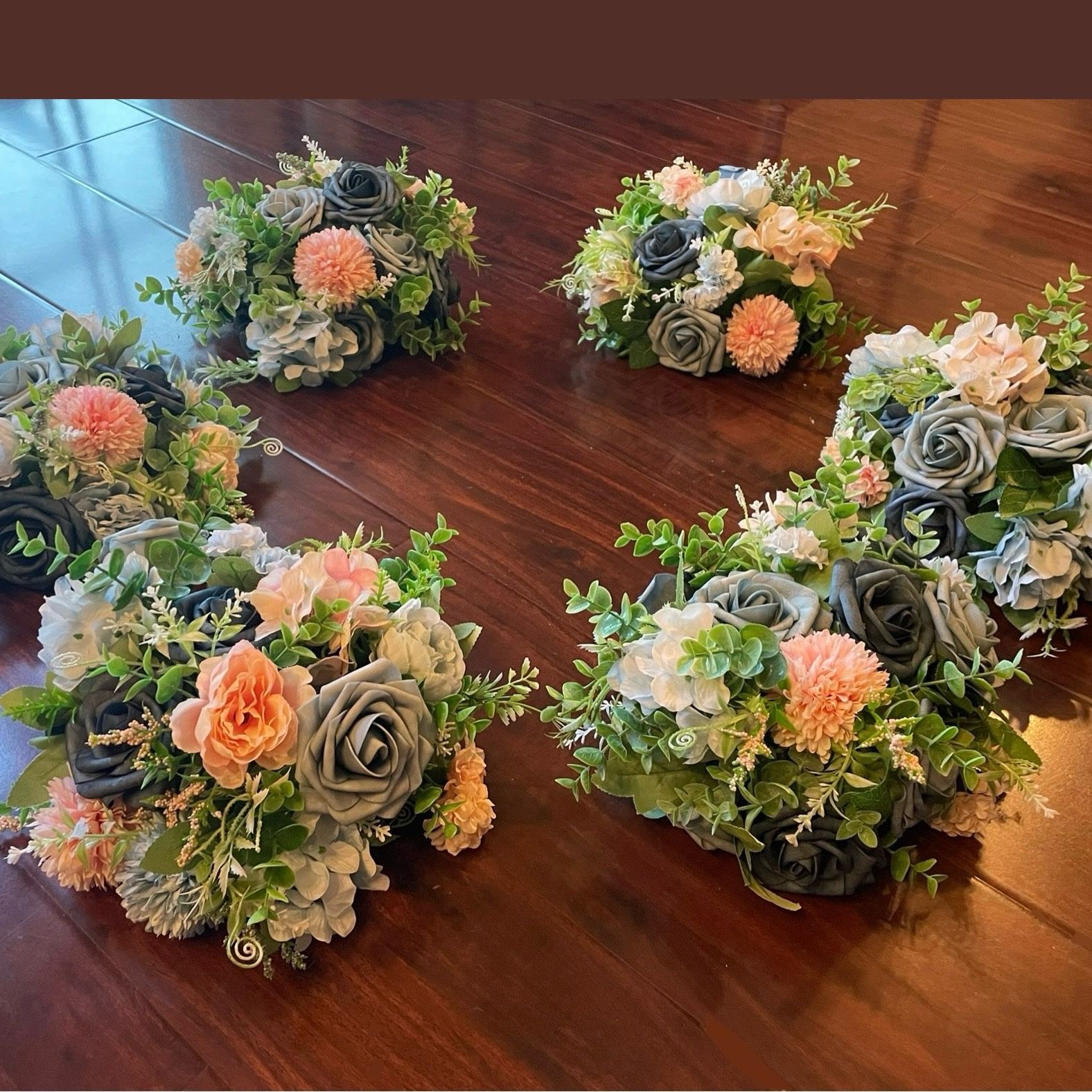 Made of a combination of high quality PE foam and silk flowers flowers. These beautiful artificial floral arrangements serve great as centerpieces for your wedding, baby shower, quinceañera, sweet 16, bridal shower or any special event. $20 each or all 6 for $100. Local pick up only