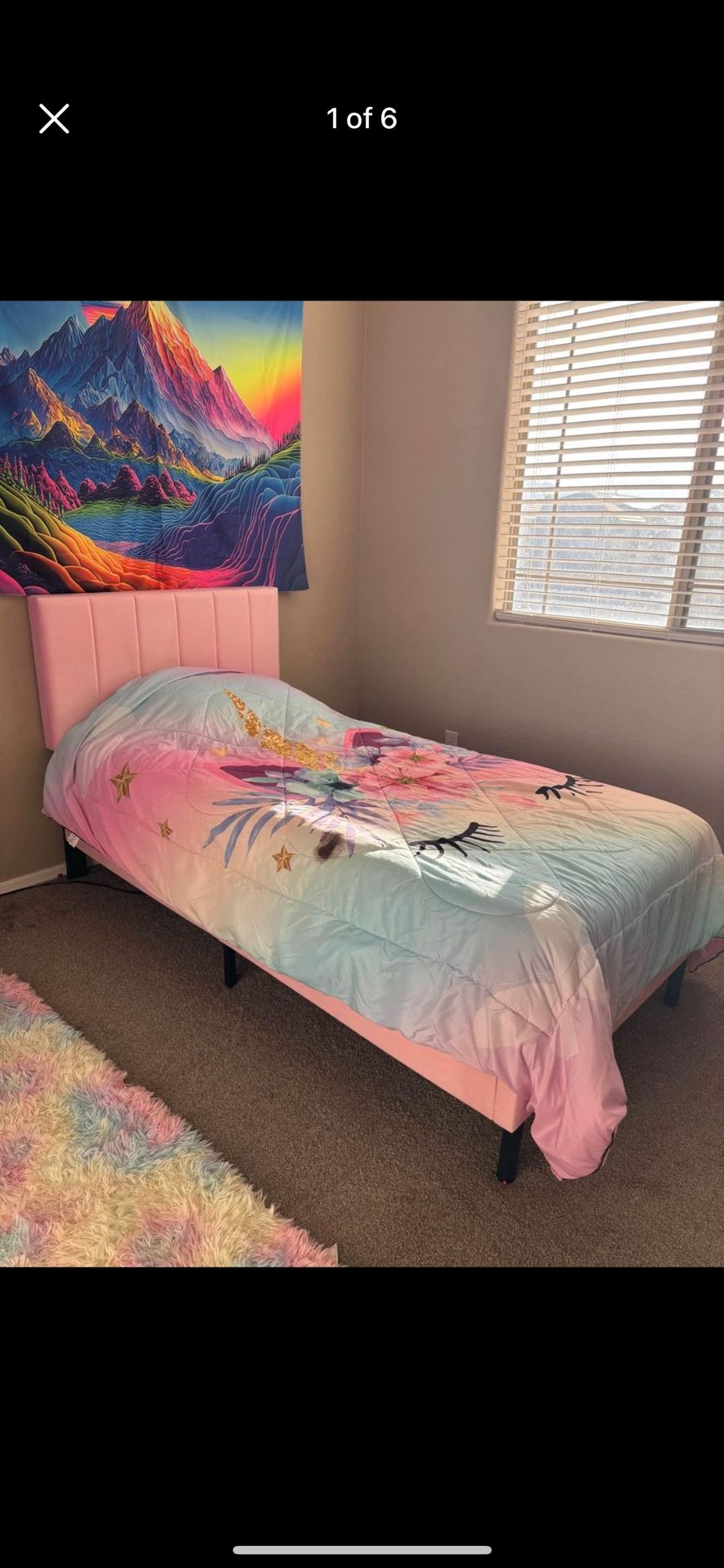 Like new! Plastic still on the mattresses. Bed frames are pink velvet with wood slats, pull out fabric drawers dresser. (Set of two each) Selling together. Moving out of state. I’ll throw in the rugs, and nightstands too! Smoke free home, pet free home. You must disassemble and pick up.