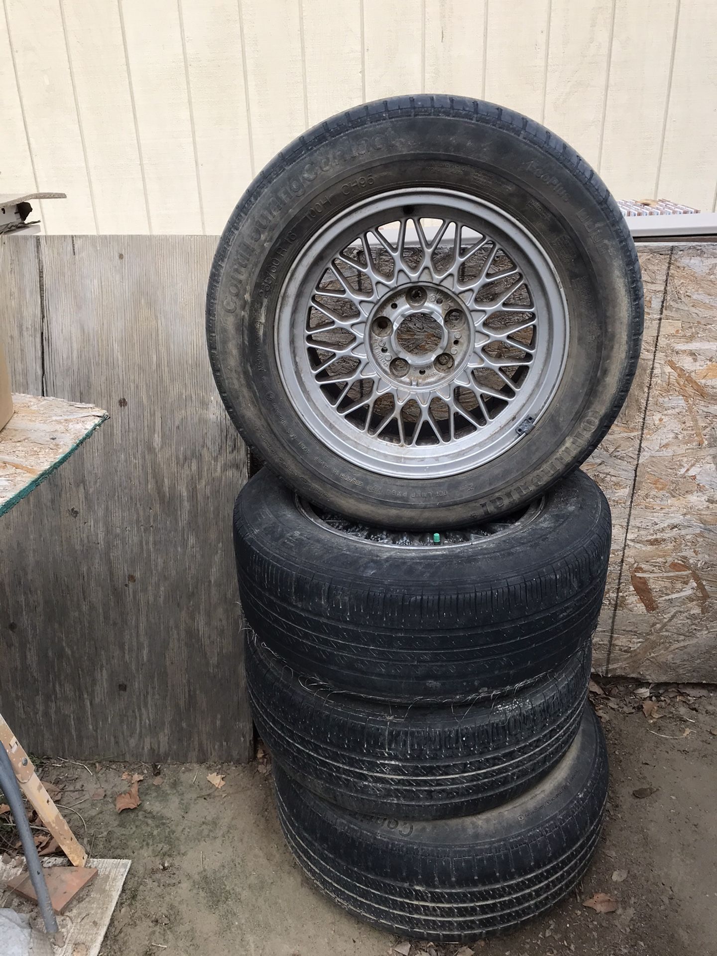 Four BMW aluminum rims and tires fits all bmw cars 235/60 R 16 contitouring contact