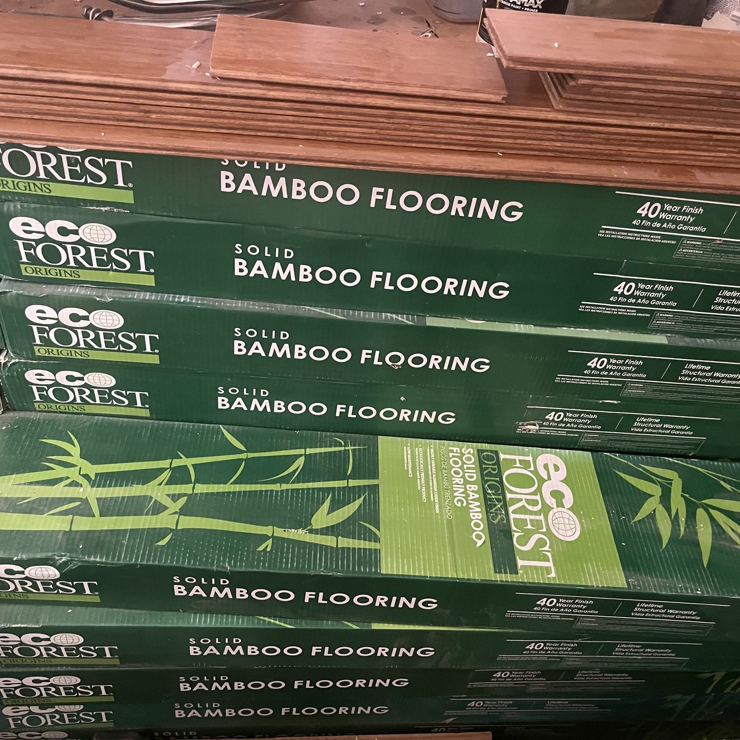 23 new boxes of solid Bamboo tung and grove flooring. 465 Sq. Feet total. Left over from my project. Easy to work with.