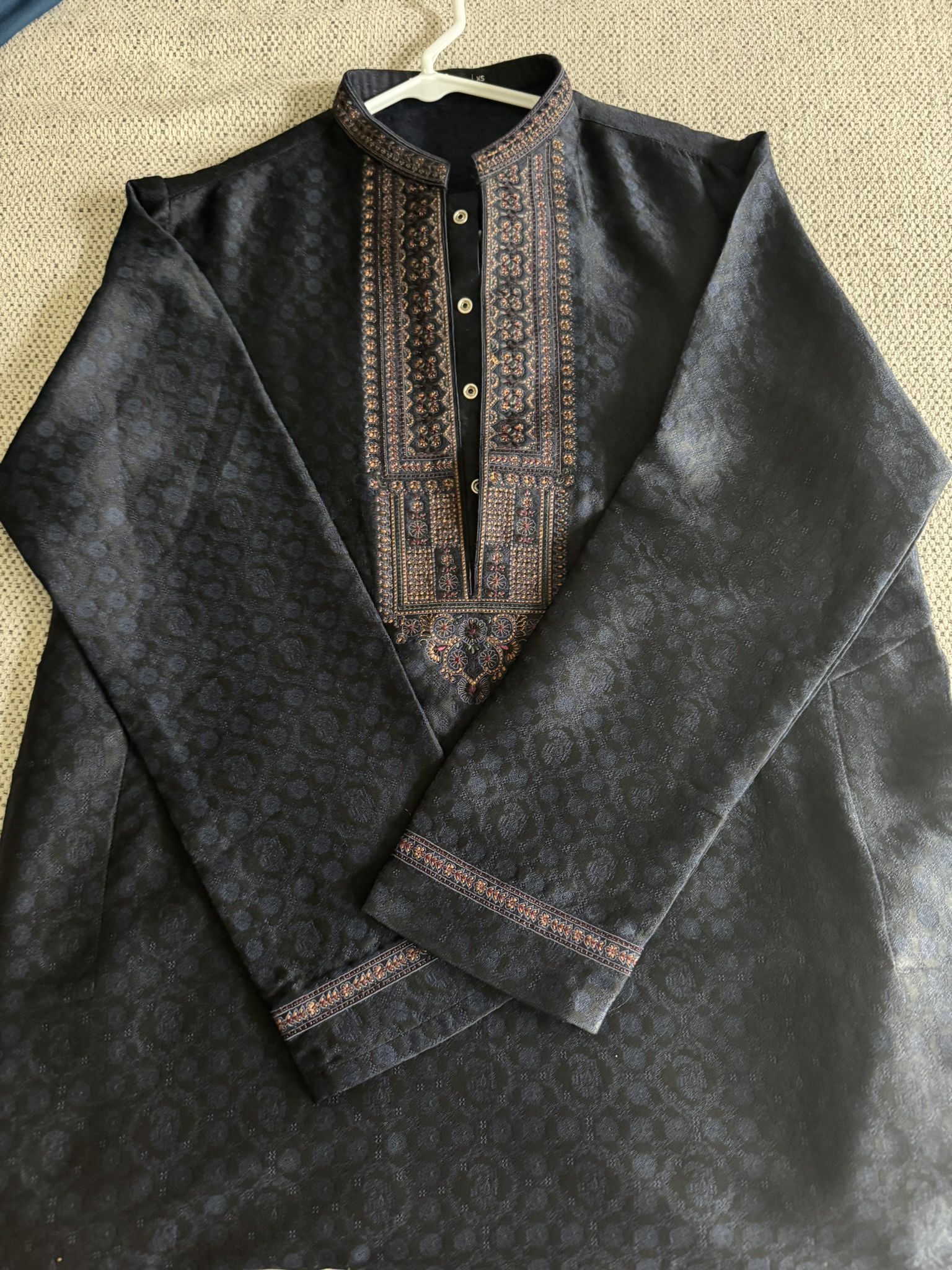 Indian / Pakistani Fancy Kurta that I bought to wear to an Indian wedding and never wore again. Bought from Junaid Jamshed in LA. Includes a shawl. Very high quality and craftsmanship. I have two more that I bought for the same wedding, I can do a bulk sell for cheaper if you’re interested.