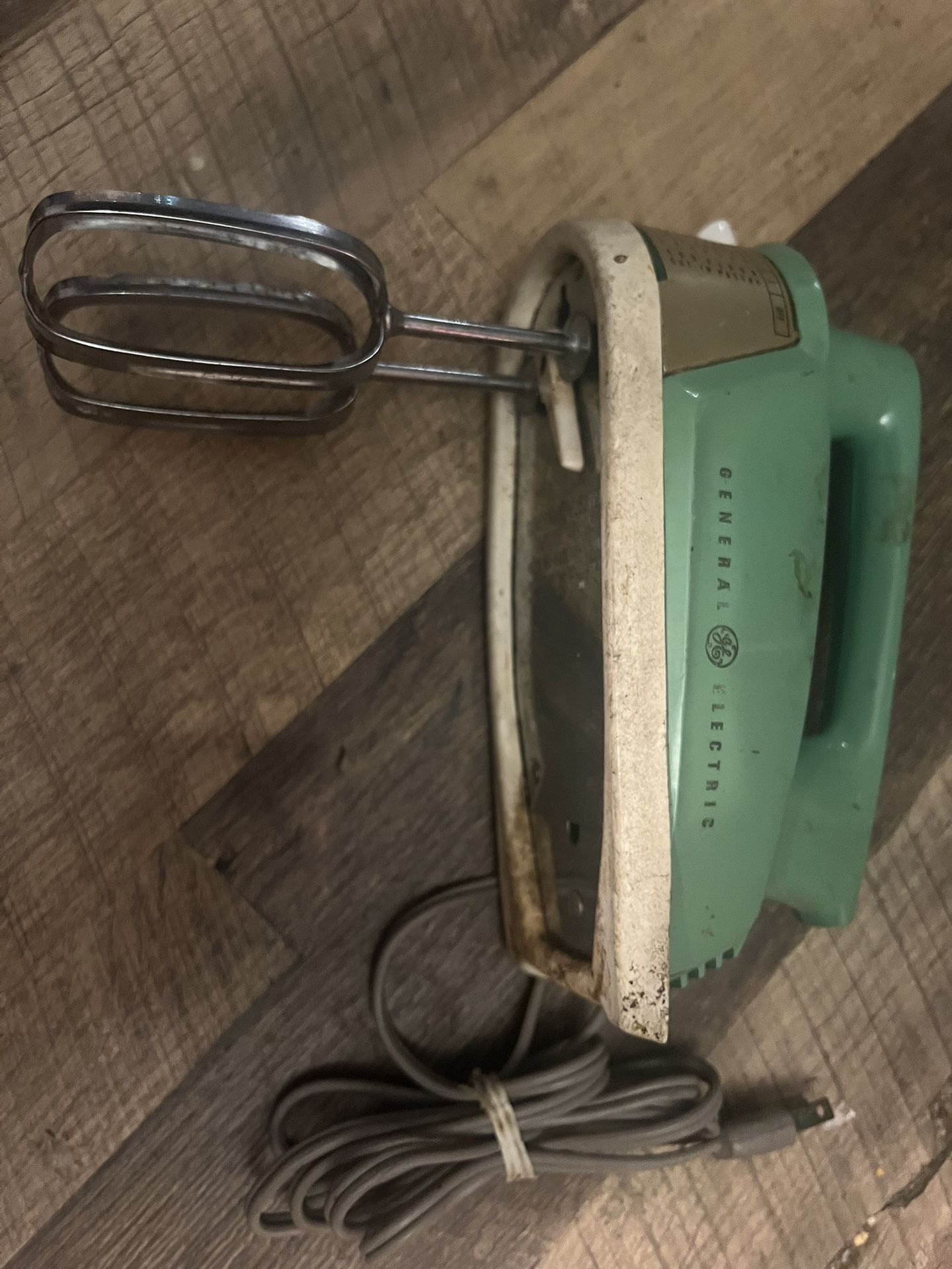 Vintage hand mixer from the 50s or 60s. A little dirty and scratched due to age but works. 40 or best offer