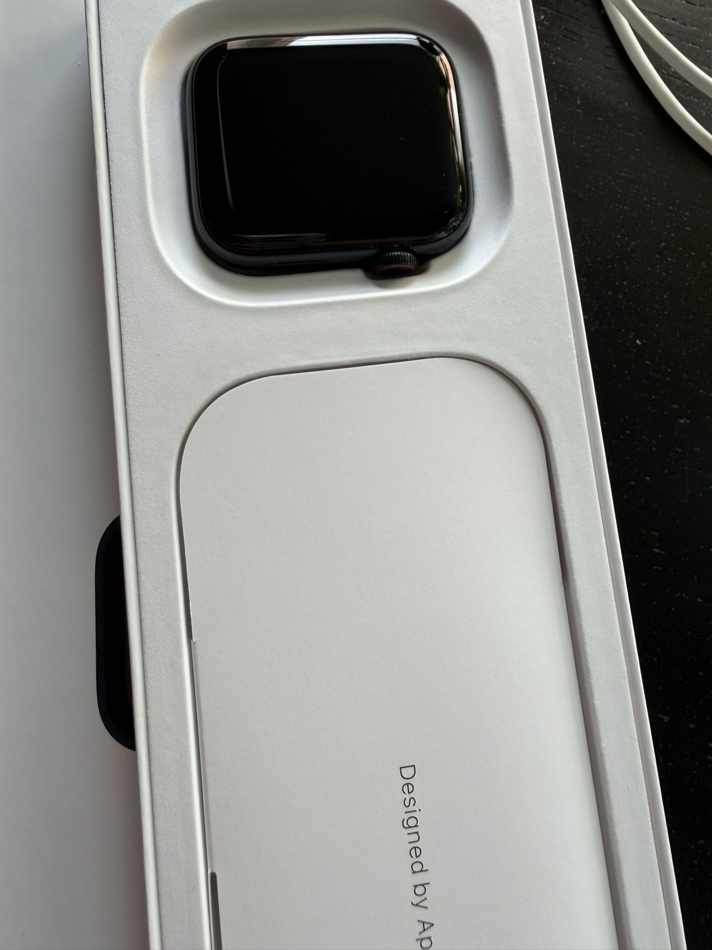 In brand new condition. Only used a couple of times. Apple Watch SE (Gen 2) 44mm midnight. Comes with charger and box and everything