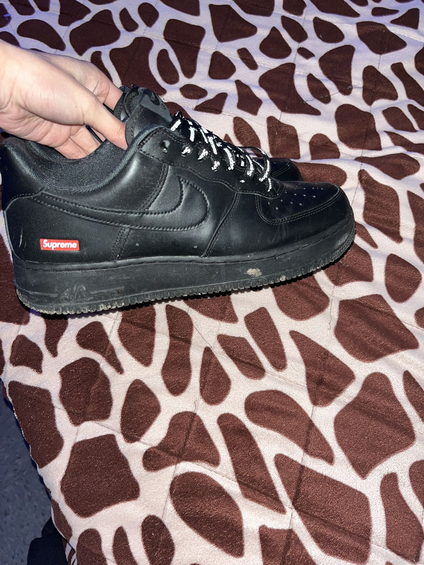 They are size 9.5 got them for a gift 1 year ago I’m willing to trade for black air forces size 9, and I will clean them if someone wants them