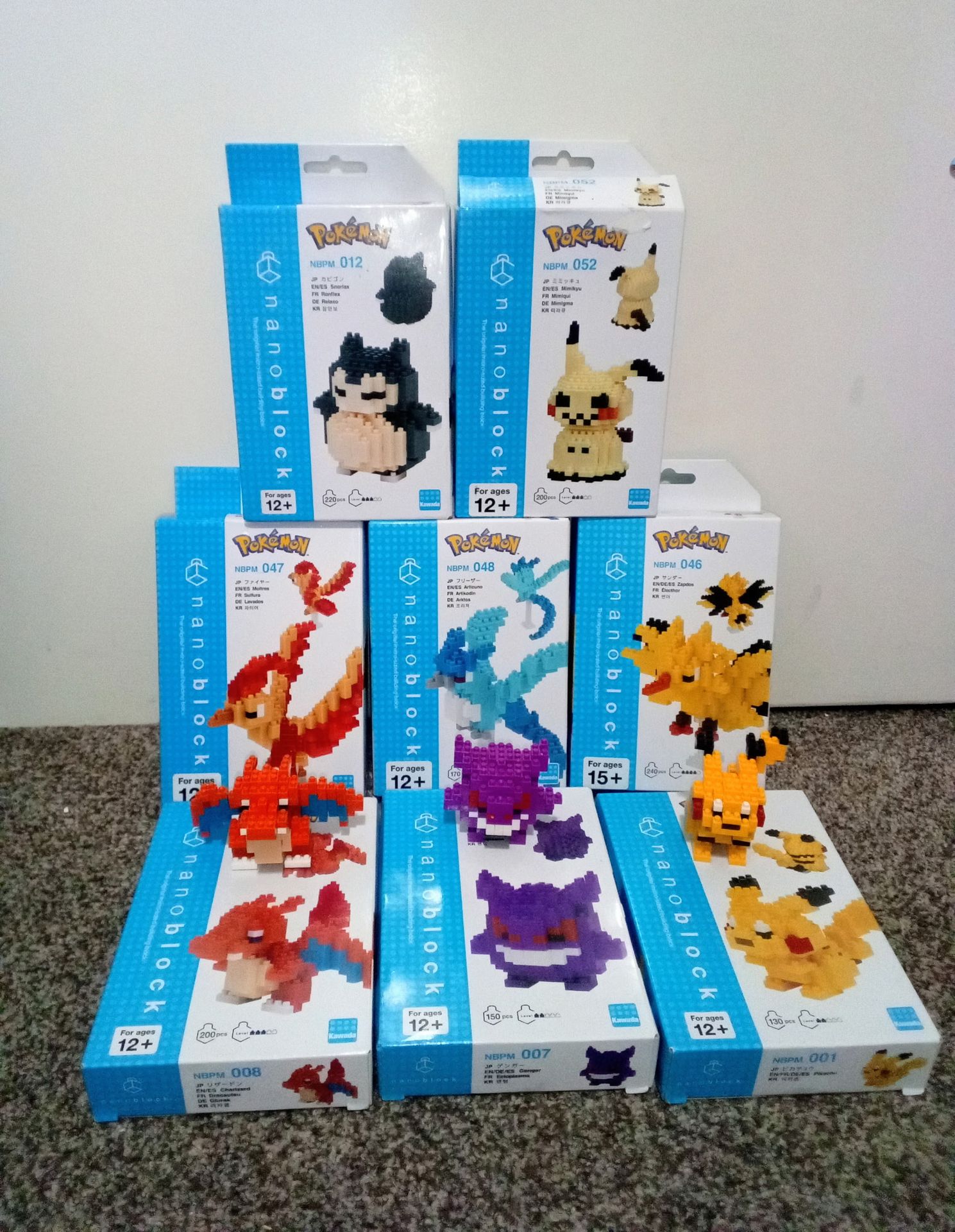 Brand New All sealed Pokemon Nano Blocks Building figures 3 Built Charizard Pikachu Gengar In box Snorlax Mimikyu Articuno Zapdos Moltres Selling all 8 figures together $40