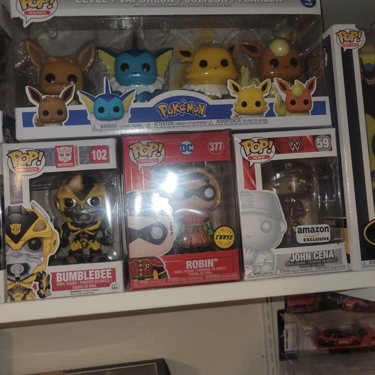 Eevee 4 pack, $45 Robin Chase 377, $16 Bumblebee 102, $30 John Cena Amazon Exclusive 59, $59