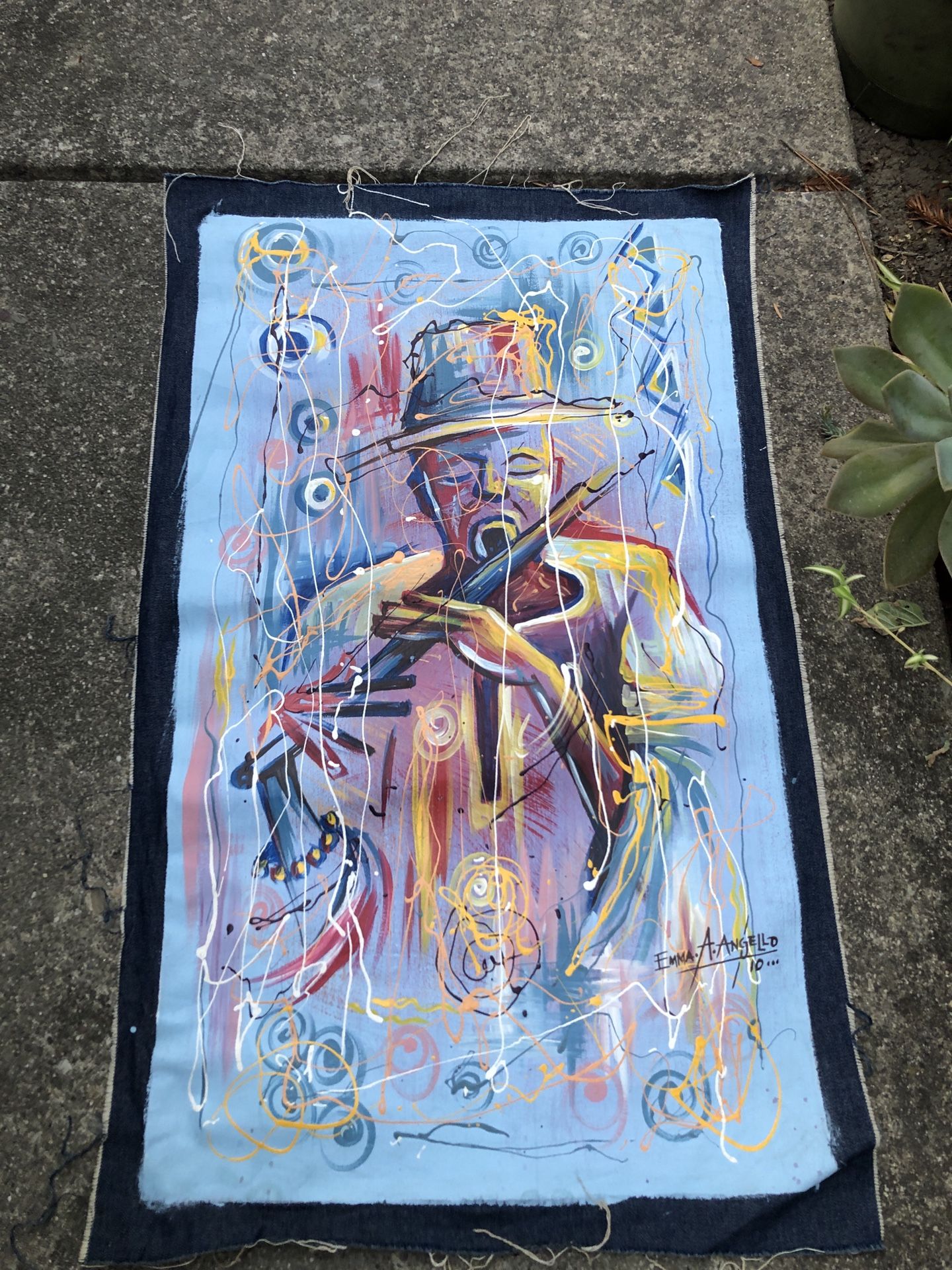 Beautiful Signed Painting on Cotton Fabric, beautifully done artwork, clean, non-smoking home.