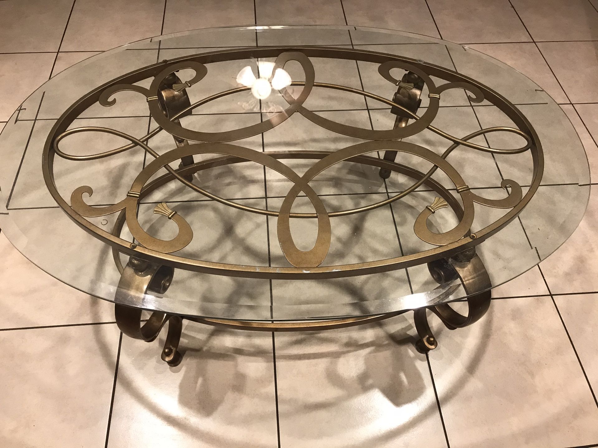 Bonita mesa de vidrio grande en color dorado y muy pesada