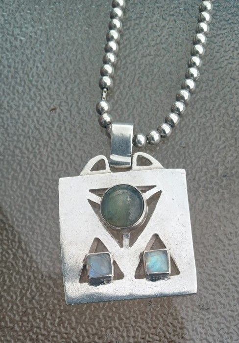 Silver Chain With Silver Labradorite And Moonstone Medallion