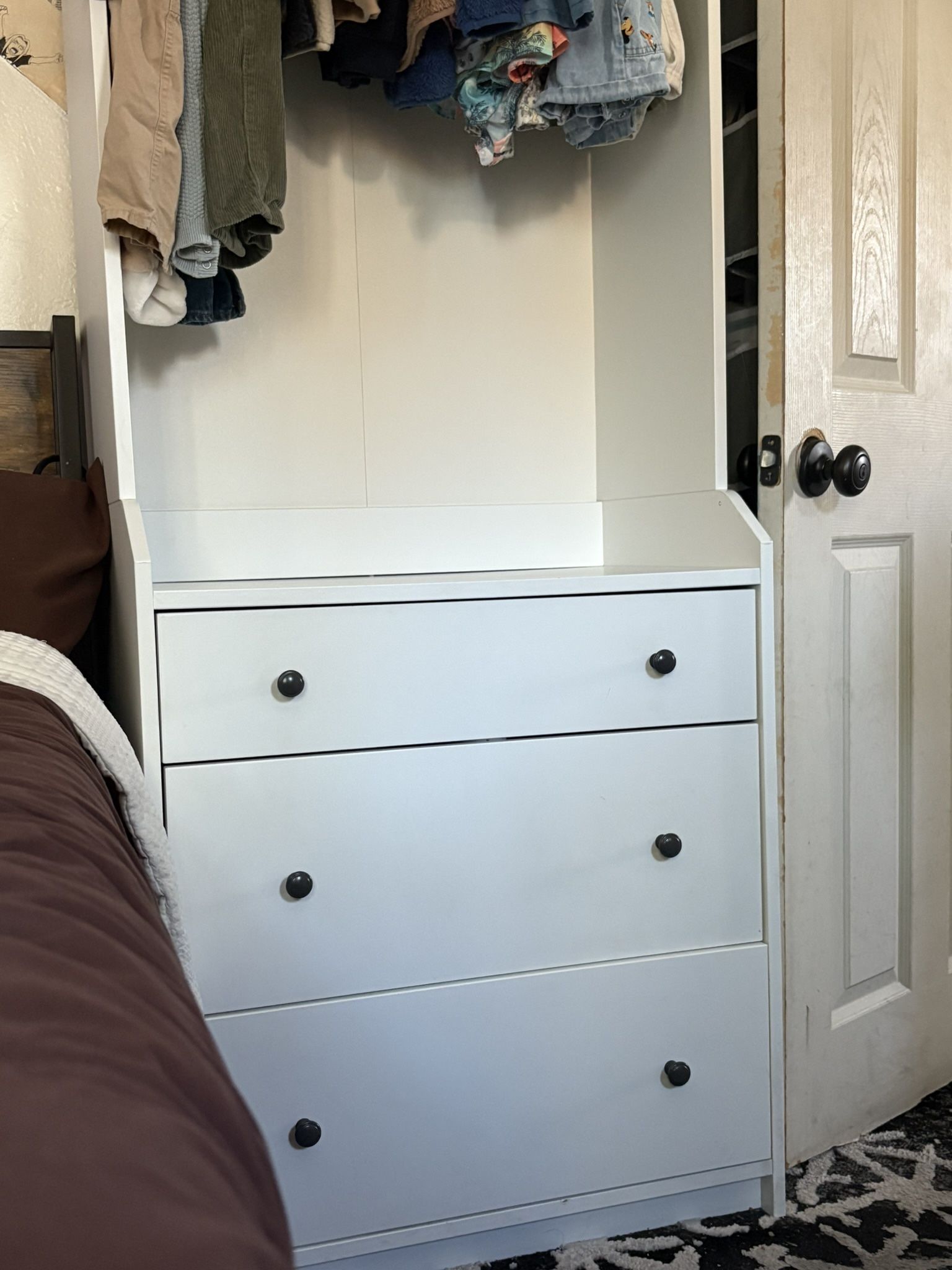 BEST OFFER TAKES IT! I use it to store my babies clothes in it. Has a stain on top (might be removable, haven't tried to take it off) a small circle crafted in the corner. Other than that in good condition. Pick up only! NEED IT GONE No lowballing at pick up, I will decline your offer.