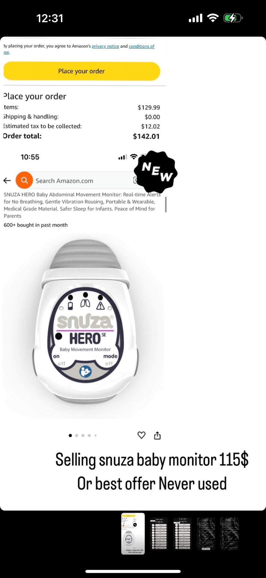 Brand new never used , keeps track of babies breathing , vibrates if no movement happens then begins to beep. Perfect for moms that want to feel more comfortable when baby is asleep.