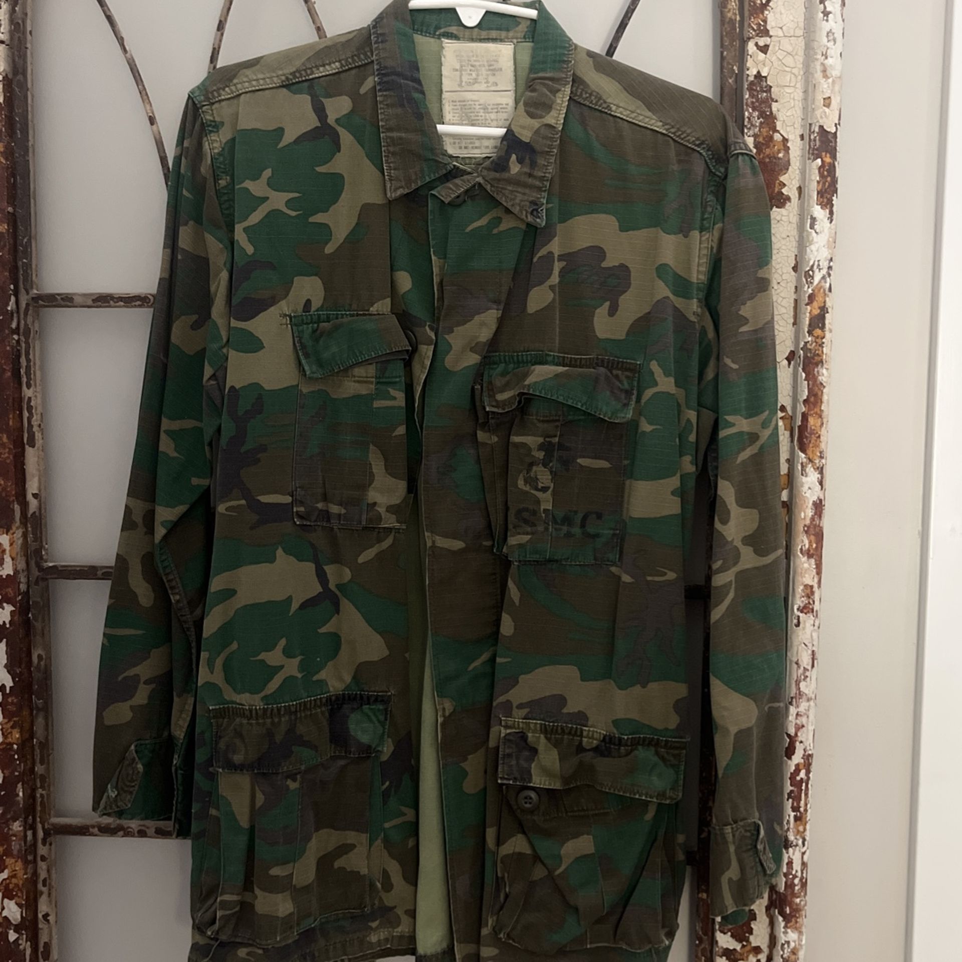 Vintage USMC woodland top. Tag is too faded to see the size. Looks to be a large . 4 pockets on top. Not missing any buttons. No rips or tears.