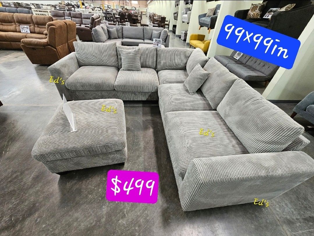 BRAND NEW 4PCS SECTIONAL SOFA SET WITH OTTOMAN AND ACCENT PILLOW INCLUDED ALL NEW IN BOX ASSEMBLE REQUIRED AVAILABLE IN GRAY OR IVORY CORDUROY
