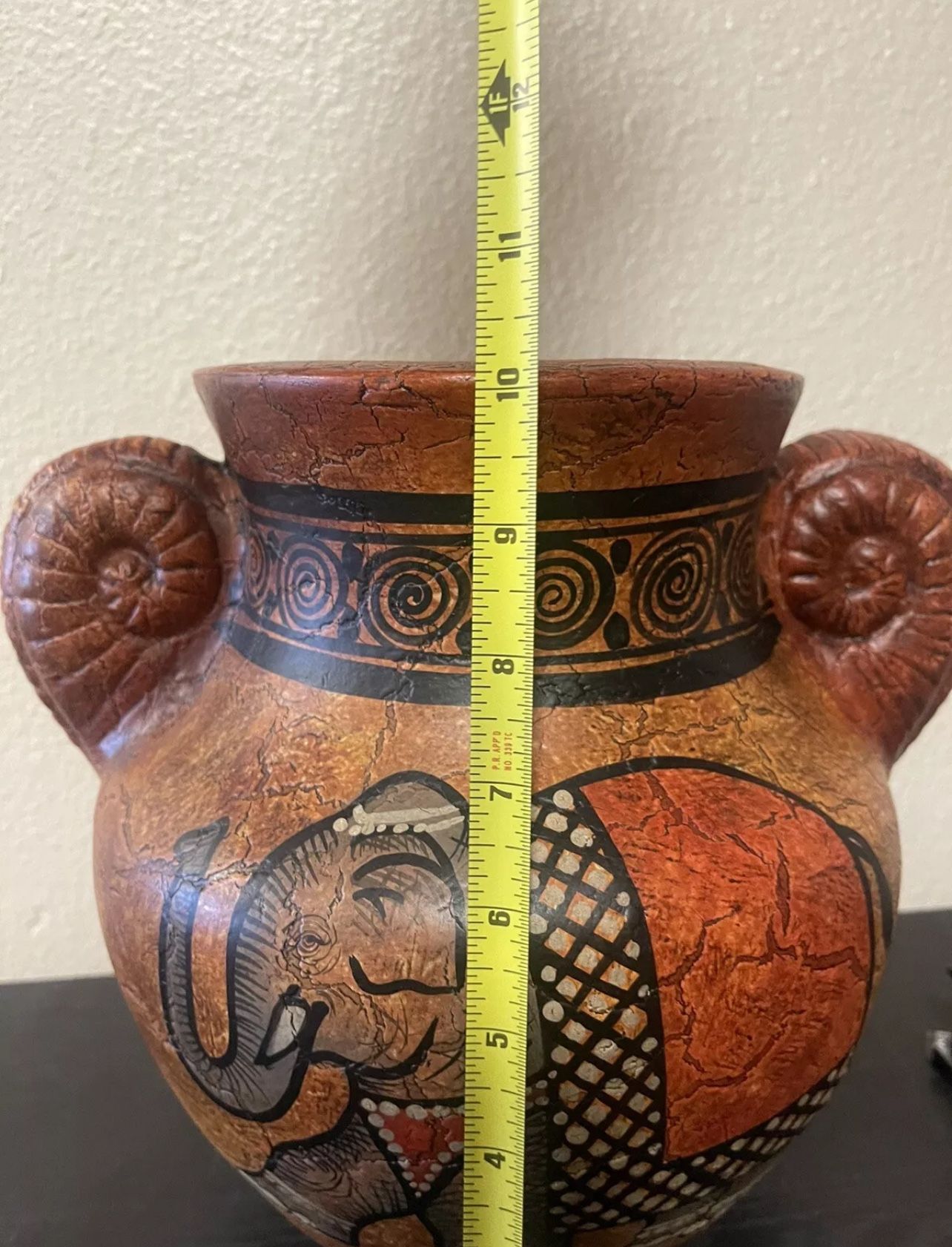 Large Vase, Elephant With Tusks , Nice Crackle Finish, NEW