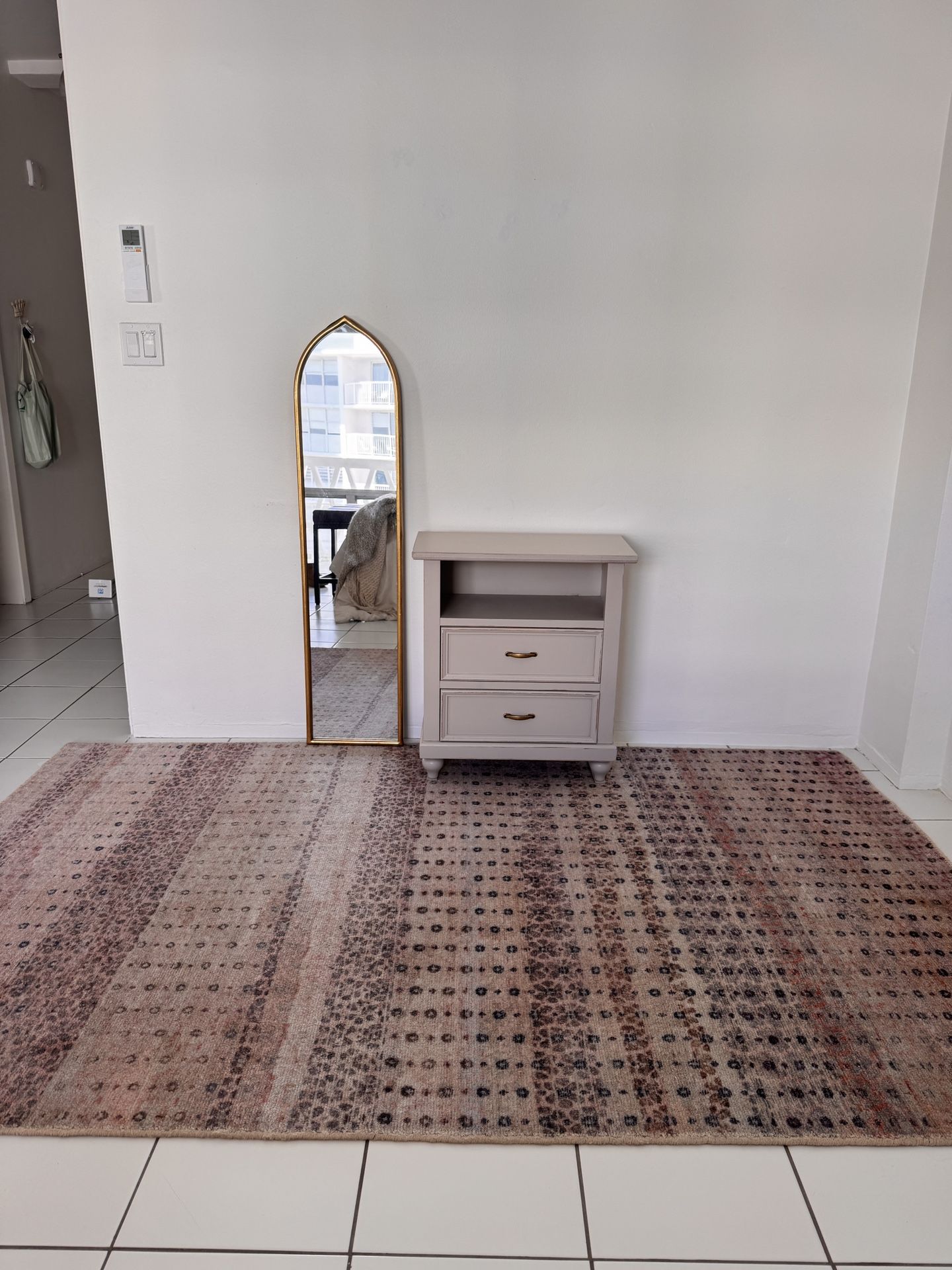 Beautiful bedroom decor bundle for sale β moving and canβt take it with me. Includes: π 5x8 area rug in blush/lavender tones π Solid wood nightstand (light lavender) with brass pulls β’ 24W x 12D x 26H β’ Drawers work perfectly, excellent condition π Matching arched gold/brass mirror β’ 50β tall x 12β wide β’ Can lean or hang on wall β’ Perfect condition From a clean, non-smoking, no-pet home. Pickup only in Brickell. β¨ Open to reasonable offers β may sell separately if needed. Gorgeous pieces, gently used, timeless style.
