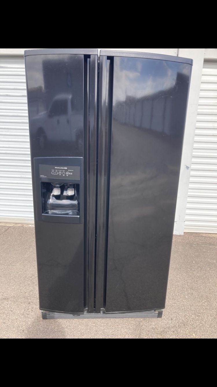 KitchenAid side by side black refrigerator in good condition, clean and nice, one month warranty, delivery available W36-D31-D69
