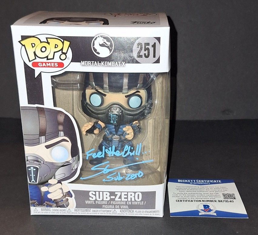 Signed in blue paint on a Sub-Zero Mortal Kombat X Funko with "Feel the Chill..." and "Sub-Zero" inscriptions. Beckett authenticated. Will come with the hologram and matching card. Will come in a pop protector. There are some imperfections please see the last photos. Please see my other items. Will ship secure within one business day. Please message with any questions thank you! Memorabilia