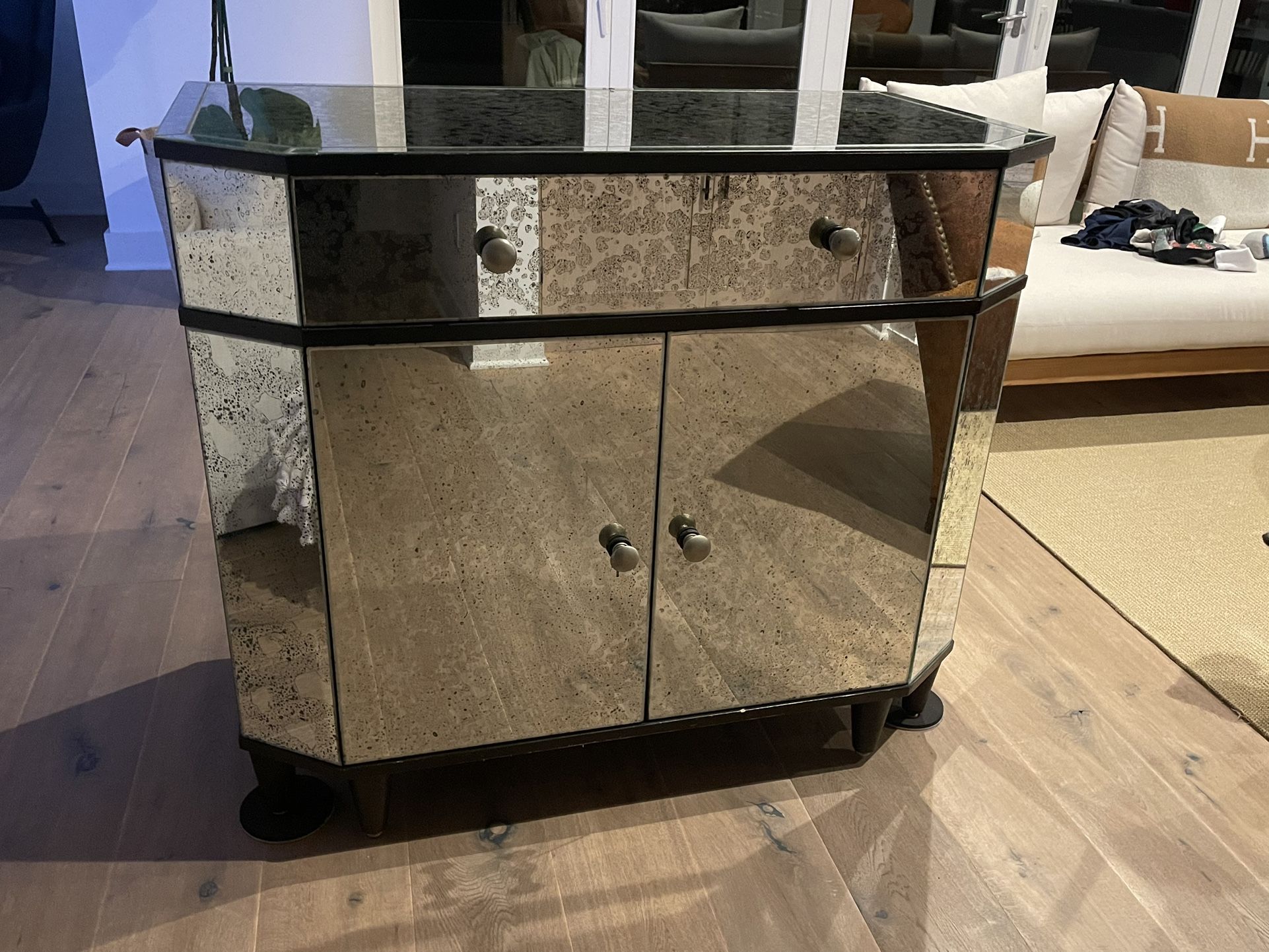 MG&BW made two versions, this was the earlier and larger version: 42” wide, 36” tall and 22” deep. One drawer plus a large cabinet - we used it as a bar.