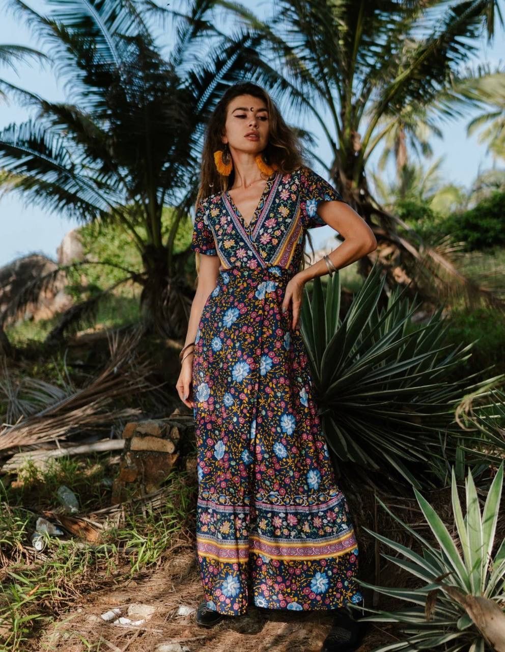 Joseph Bohemian Wrap Maxi Dress. Color: Navy Blue. Size: XL
