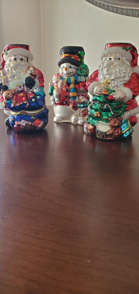 Glass tea light candle holders 3 piece set hand blown glass individually hand painted hold standard sized tea like candles stands 7 inches high $25.00